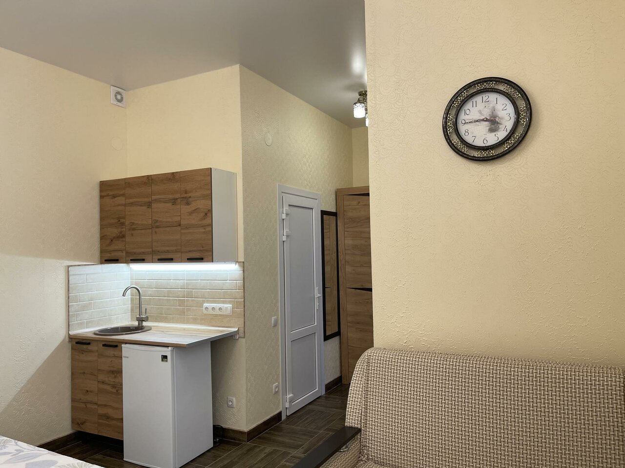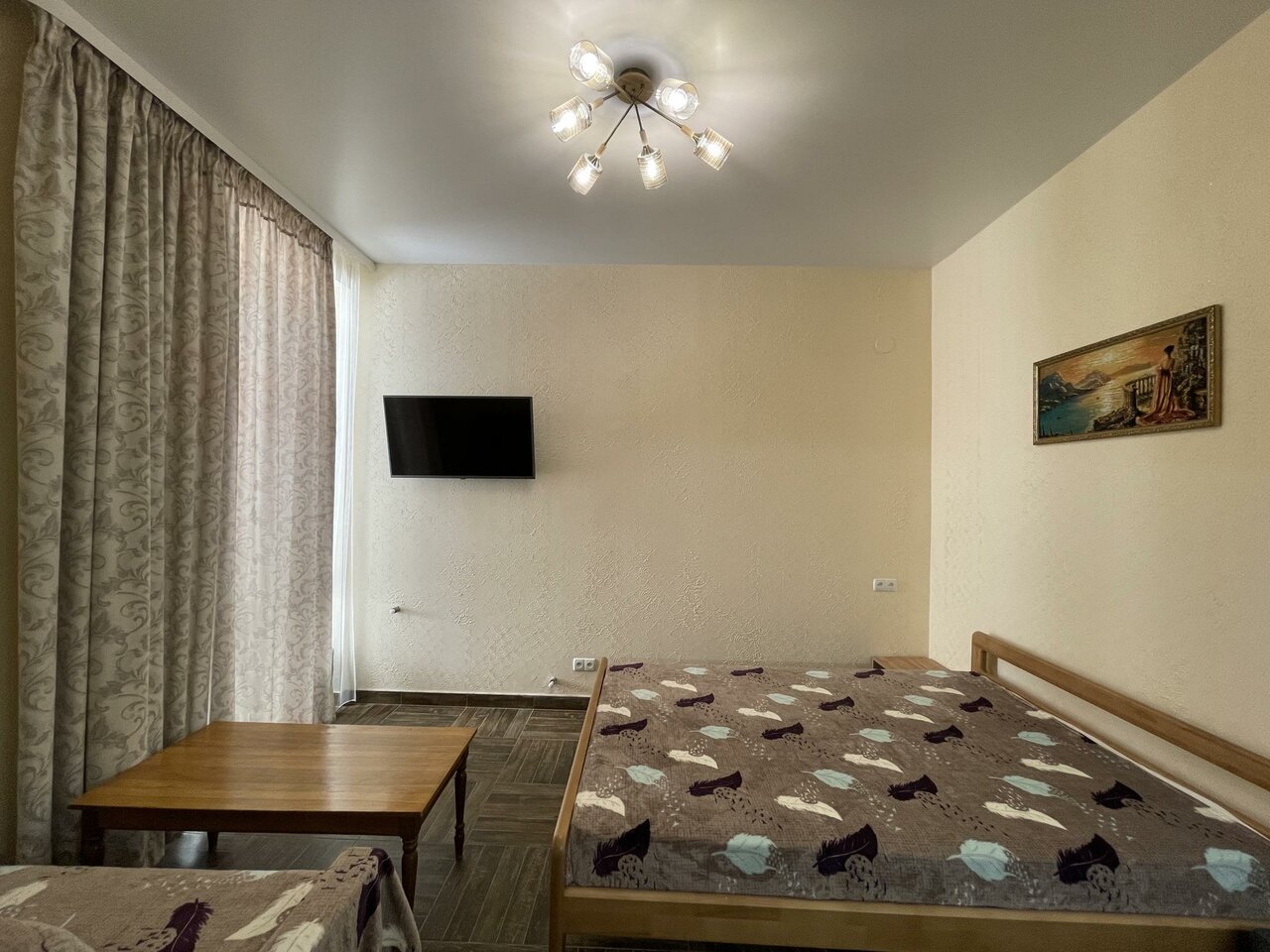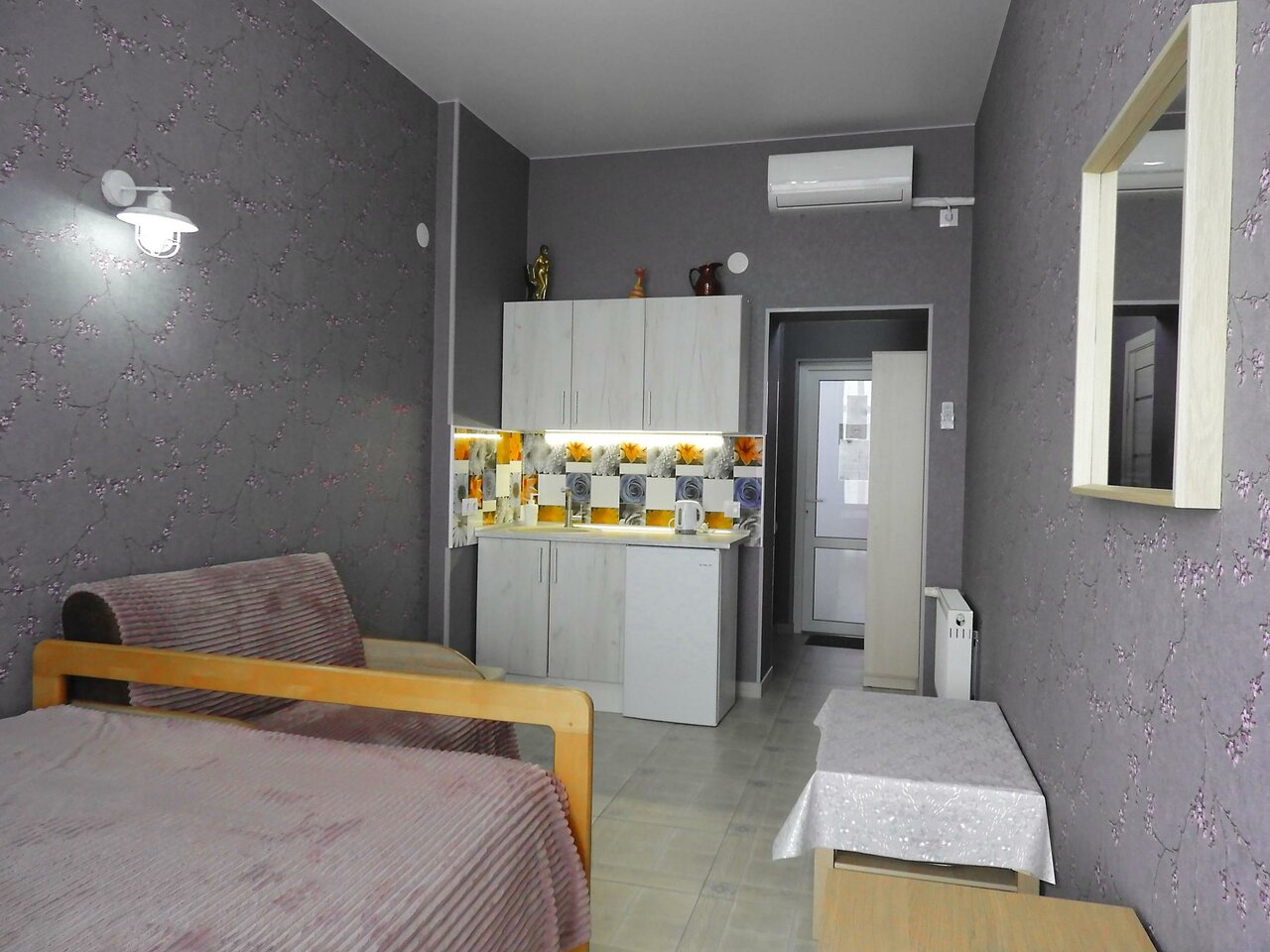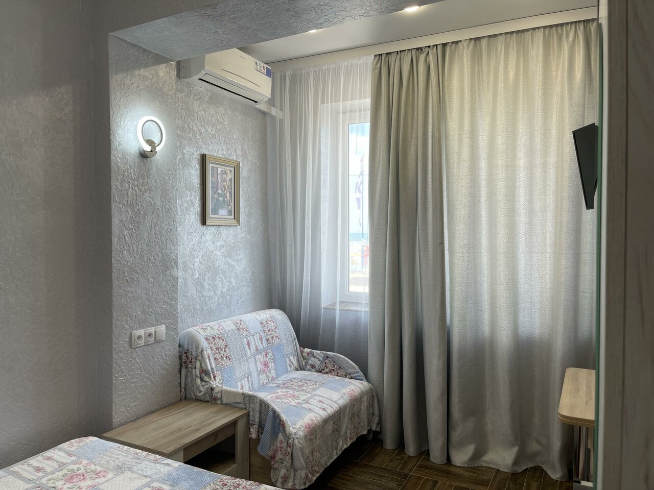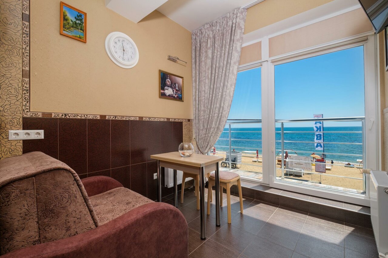 Проживали в сентябре в семейном номере, номер комфортный с кухней,на кухне есть всё необходимое для приготовления (не хватало только микроволновки),даже мелочи хозяйственные есть. Шумоизоляция номеров идеальная (при закрытых окнах). Смена белья,полотенец и уборка по запросу,за уборку хочется отдельно поблагодарить нашу Леночку-Золушку!!!Стирка платная,но оно того стоит,запах вещей Локация идеальная для пляжного отдыха-первая береговая линия ,пляж песчаный с преимущественно-ракушечник ,на первом этаже есть душ для ног,а на верхнем этаже есть открытая веранда с красивым видом. Сетевой магазин не близко,но есть минимаркеты, в сезон открыто много столовых и кафе, рядом жд станция-10 минут и вы в центре города,маршрутки в исторический центр ходят часто,для детей большой парк с площадками и аттракционами (минут 25 ходьбы спокойным шагом).