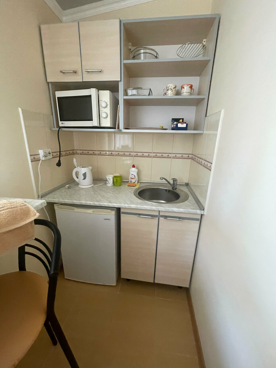Уютный красивый гостевой дом.Хозяева приветливые и заботливые. Всегда готовы прийти на помощь. Комнаты чистые икомфортабельные с мини кухней. Во дворечистота, зелено. Бассейнейн с подогревом. Очень удобное расположение дома. Рядом магазины,базар. К морю идти 10 минут.
