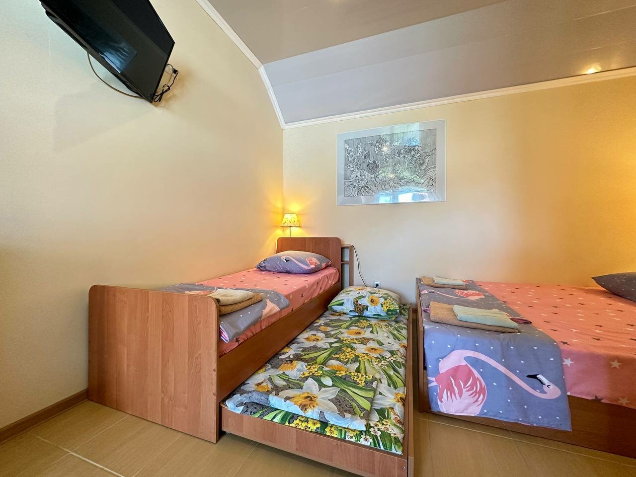 Комфортабельные номера с приятным интерьером. 4-х местный удобный номер со всем необходимым. Погрузитесь в комфорт и уют нашего отеля! Наслаждайтесь удобными номерами, бассейном и высоким уровнем сервиса. Ваш идеальный отдых начинается здесь!