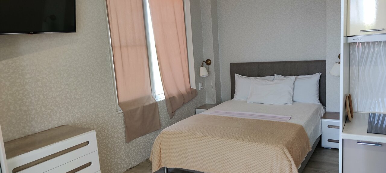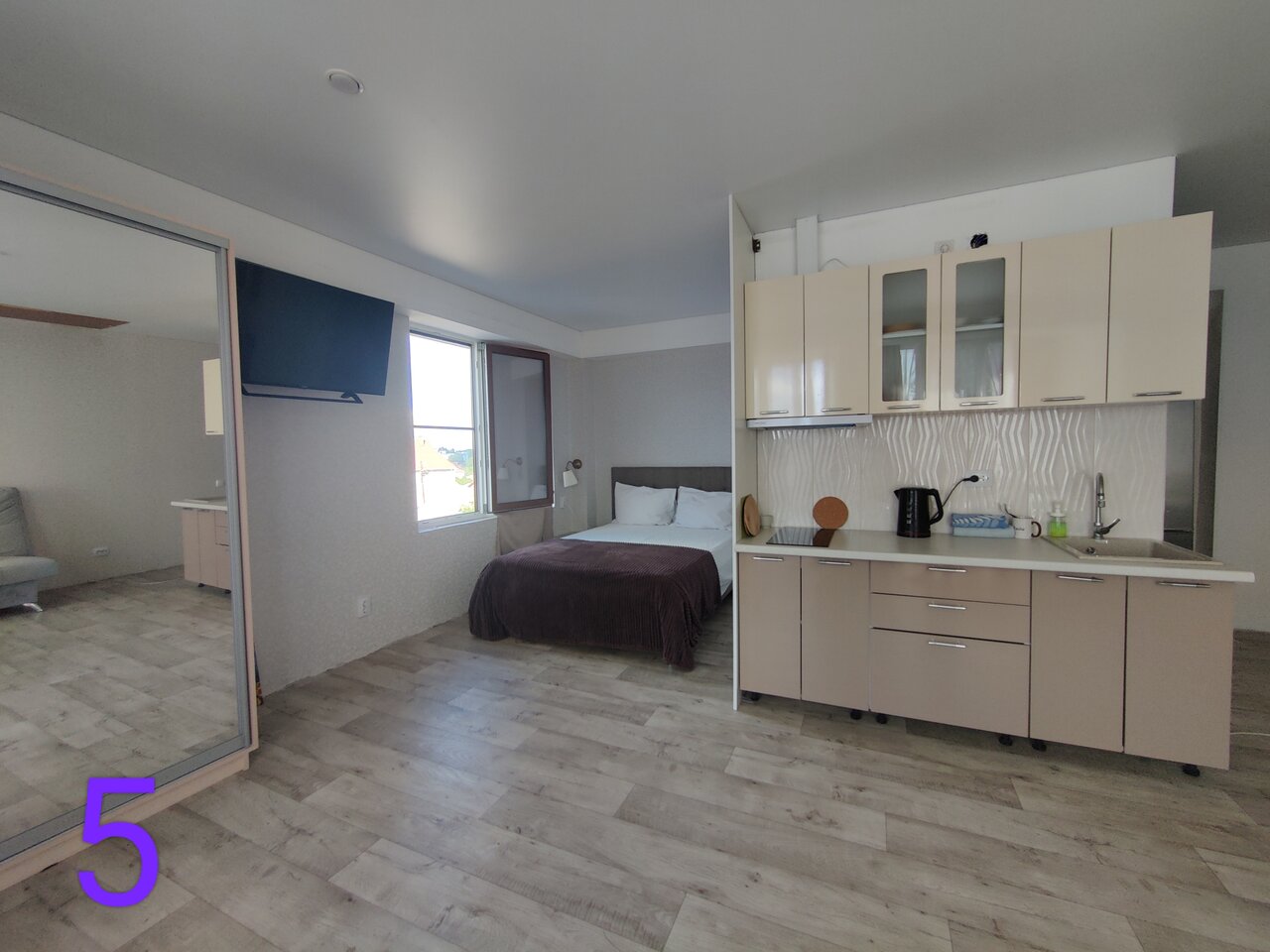 Чистые номера со свежим ремонтом, у нас был номер студия со своей кухней, так же есть мангальная зона с зеленной зоной отдыха. До центрального пляжа 15 минут, но мы ездили за город там людей меньше. Рекомендую, все в доступности рядом парковка