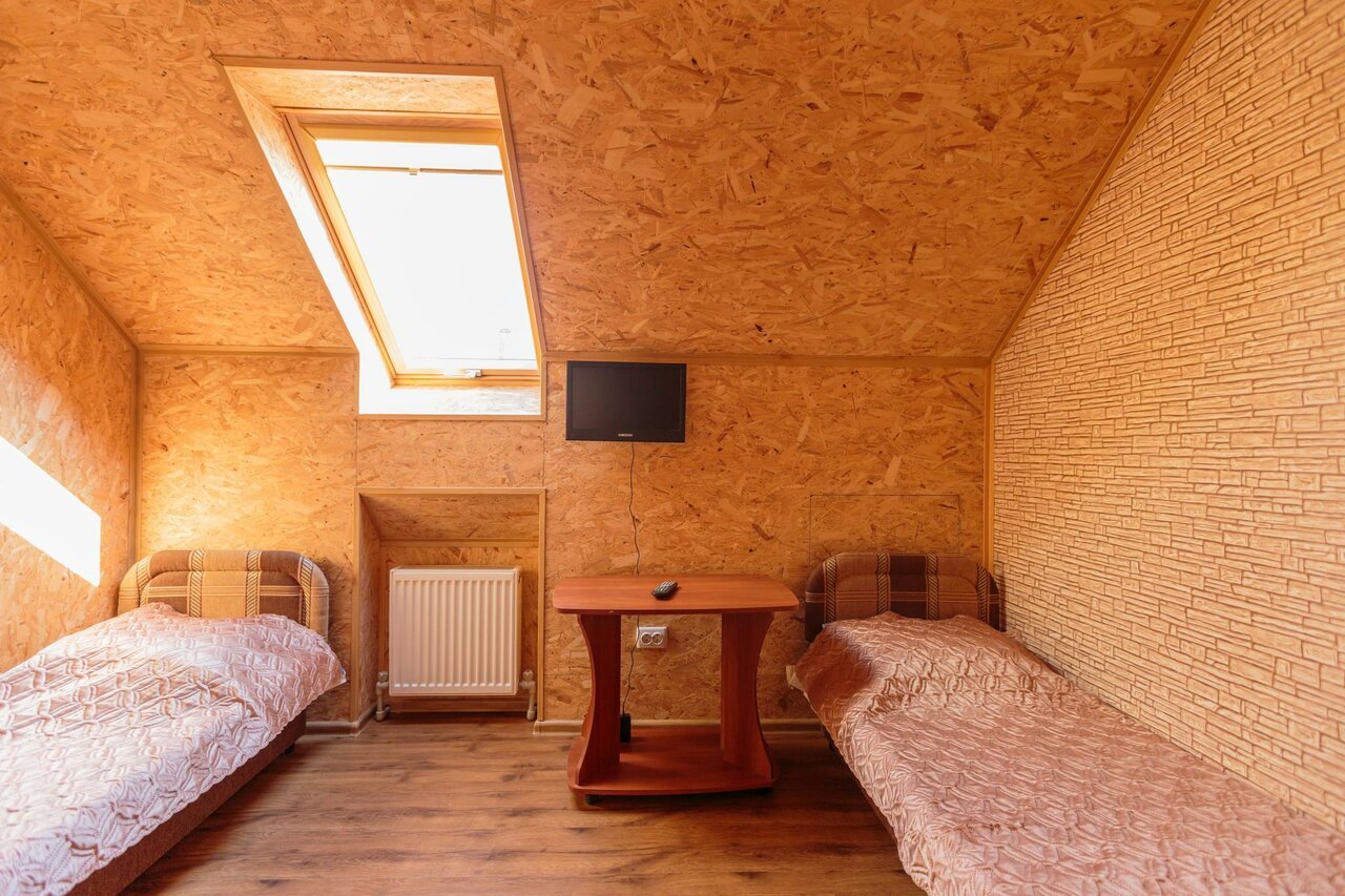 Стандартный двухместный номер с двуспальной либо двумя односпальными кроватями (по запросу). Туалет и душ в номере. Номер оборудован всем необходимым. В номере: телевизор, полотенца, стаканы. На территории есть большая кухня-беседка со всем необхо...