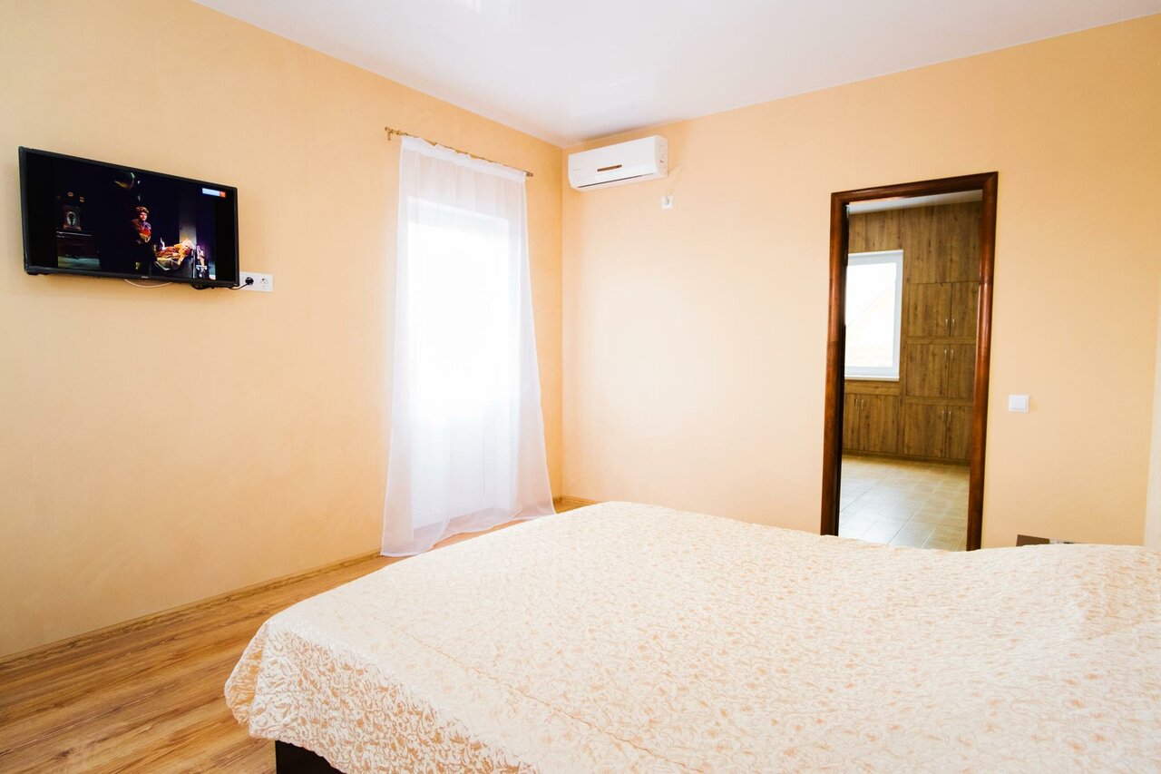 Двухкомнатный номер с двуспальной и двумя (тремя) односпальными. Туалет и душ в номере. Номер оборудован всем необходимым. В номере: телевизор, кондиционер, полотенца, стаканы, холодильник. На территории есть большая кухня-беседка со всем необхо...