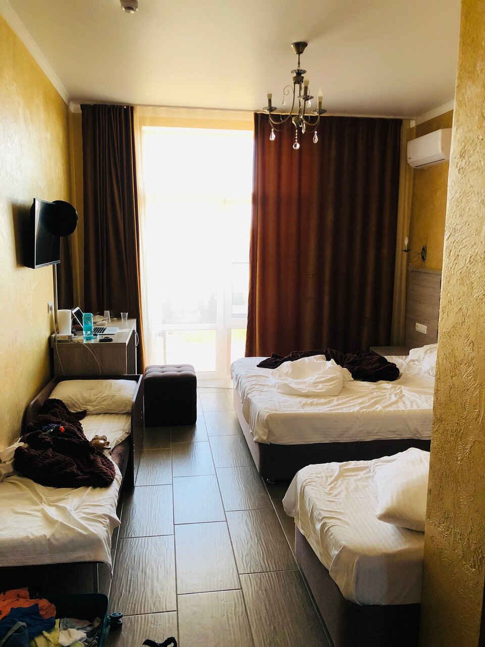 Всё в целом хорошо. из минусов. 1. слышно всю ночь дорогу. не люблю кондиционеры, сплю с открытым окном 2. в столовой. сложилось впечатление, что чем больше дней питаешься, тем дешевле становится еда. первый обед вышел на 3х человек 1,5к. через неделю уже не превышало 1к. думаю кассир Паша не прост)) 3. трудно пересечь дорогу к пляжу. движение плотное, у светофора странный алгоритм. хотелось бы кнопку на него