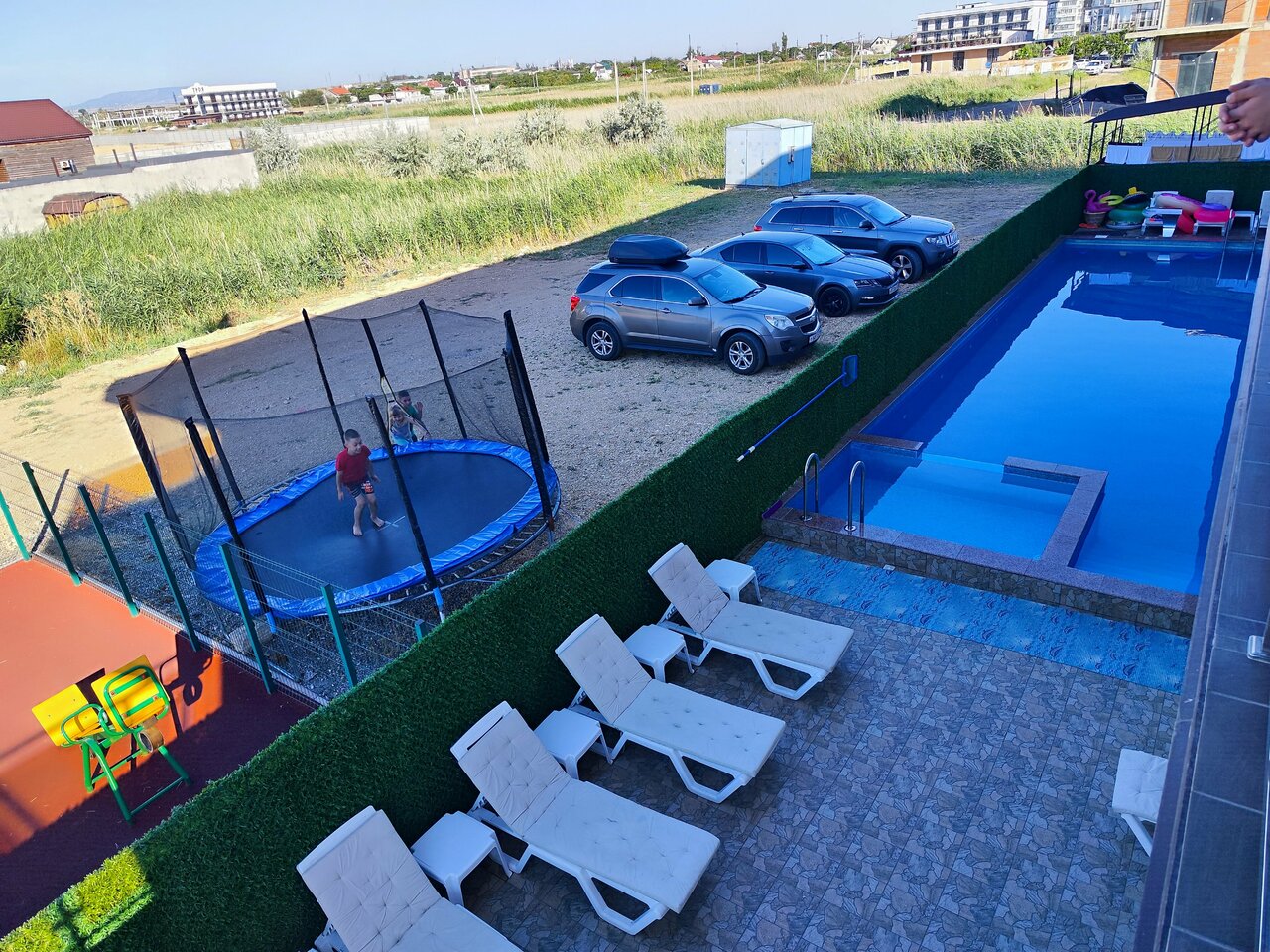 Есть свои плюсы и минусы. Начнём с плюсов: Новая гостишка: свежий ремонт, новая мебель и сантехника, всё свеженькое. Столовая на первом этаже: готовят вкусно, сытно, блюда большие, но однообразные (за пару-тройку дней сильно привыкаешь), цены умеренные, хотя немного выше, чем в столовых города. Если человек не гурман, то всё отлично. Расположена напротив пляжей, ходьбы минут 2-5 медленным шагом. Относительно не дорого. Собственная парковка. Бассейн сезонный. Кулер с водой и стаканами на каждом этаже. Из минусов: Расположена прям на дороге. Шум транспорта постоянно. Переходить дорогу, чтобы попасть на пляж сложновато из-за большого потока машин. Режим работы столовой: 8:30-19:00. Неудобняк тем, кто рано уходит и поздно приходит. Далековато от Фео и магазов, без машины будут неудобства в плане добраться. Общий балкон, хотя и разделён перемычками. Лично у меня были незначительные нареканий по чистоте номеров.