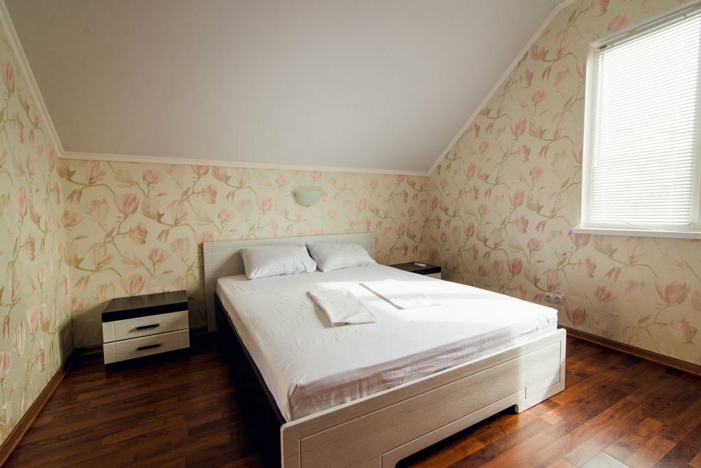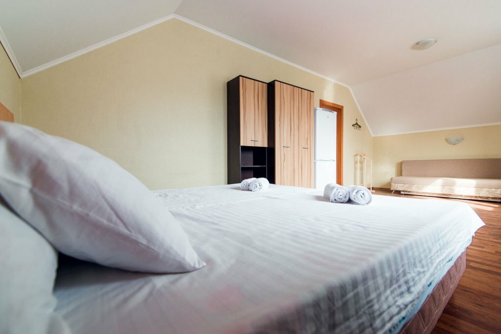 Номер в коттедже вместимостью 2 человека расположен в двухэтажном коттедже в поселке Береговое на берегу моря: до Золотого пляжа всего 50 метров. Снять номер в коттедже на Золотом пляже можно на нашем сайте