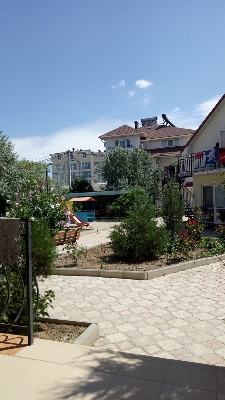 Уютный отель прямо у дороги в Феодосии, напротив входа на хороший песчаный пляж. Семейная атмосфера, очень доброжелательный персонал, комфортные номера, на территории закрытая парковка, клумбы и небольшая детская площадка. Можно за отдельную плату выбрать из меню завтрак, обед и ужин.