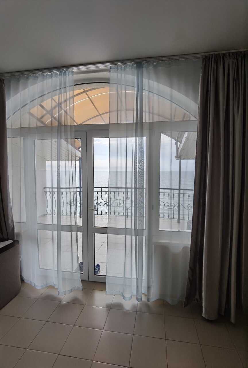 Гостиница удобно расположена, море через дорогу. Уютные номера, немного старый ремонт, но не напрягает. Хороший двор, парковка. Мы были не в сезон,своя столовая не работала, но есть рядом. Доброжелательный персонал.