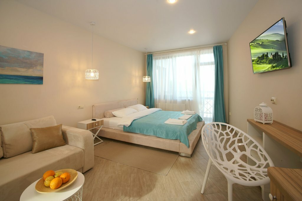 Это очень крутой гостевой дом!правда!все необходимое есть, включая wifi и телевидение!!кондей в жару реально спасал!!душевые тоже порадовали)но что нашу семью удивило-это реально очень вкусный завтрак!!было крайне приятно посетить этот чудесный гостевой дом и по приезду еще раз в Феодосию, несомненно, остановимся здесь