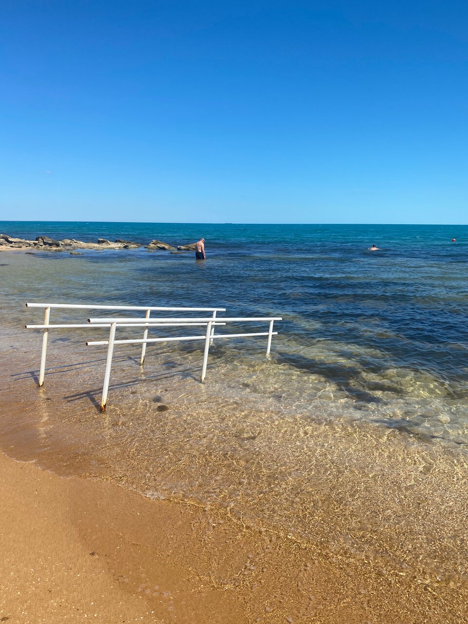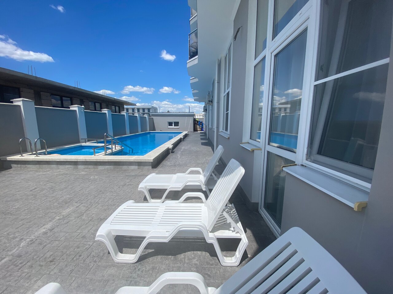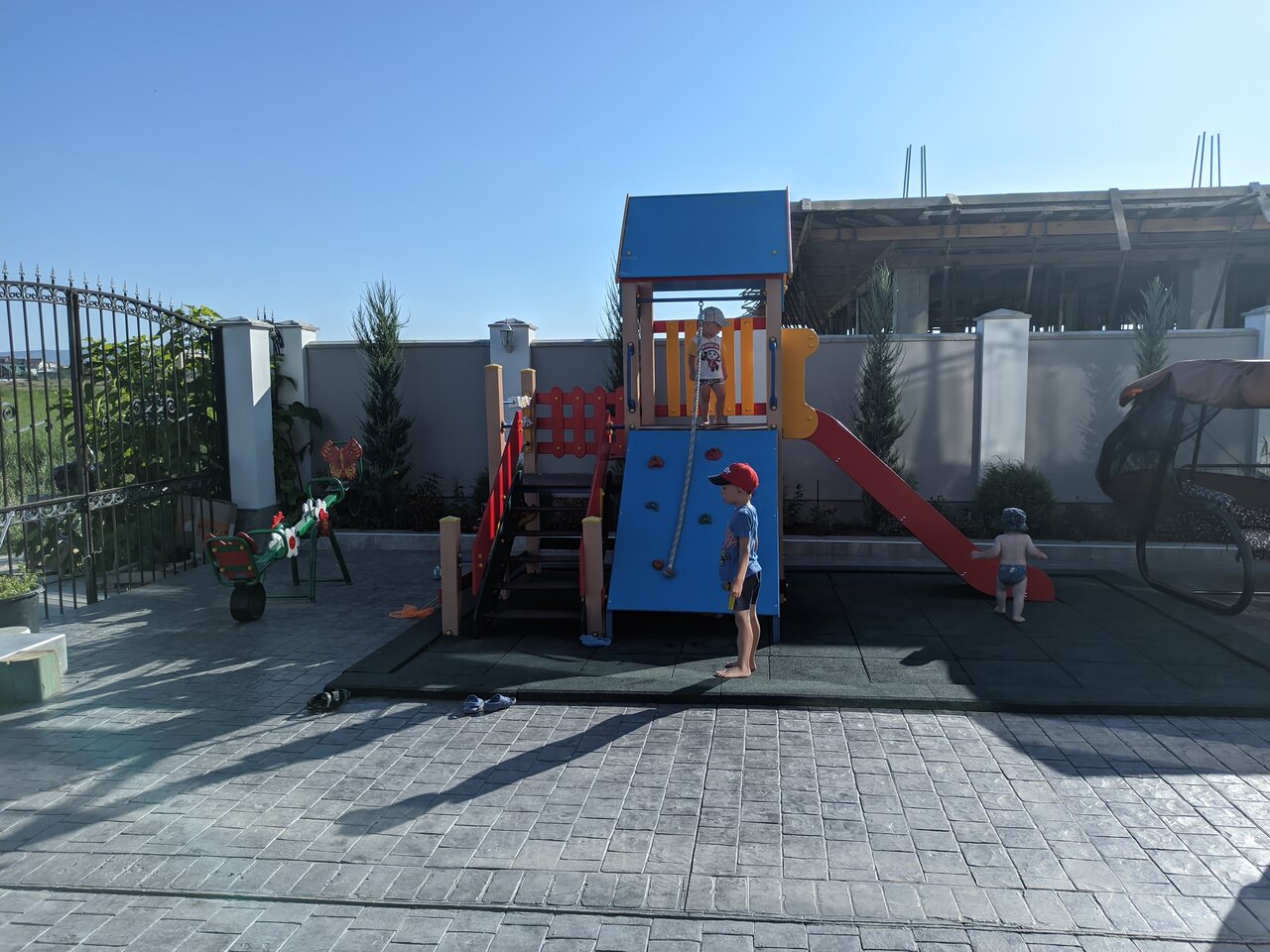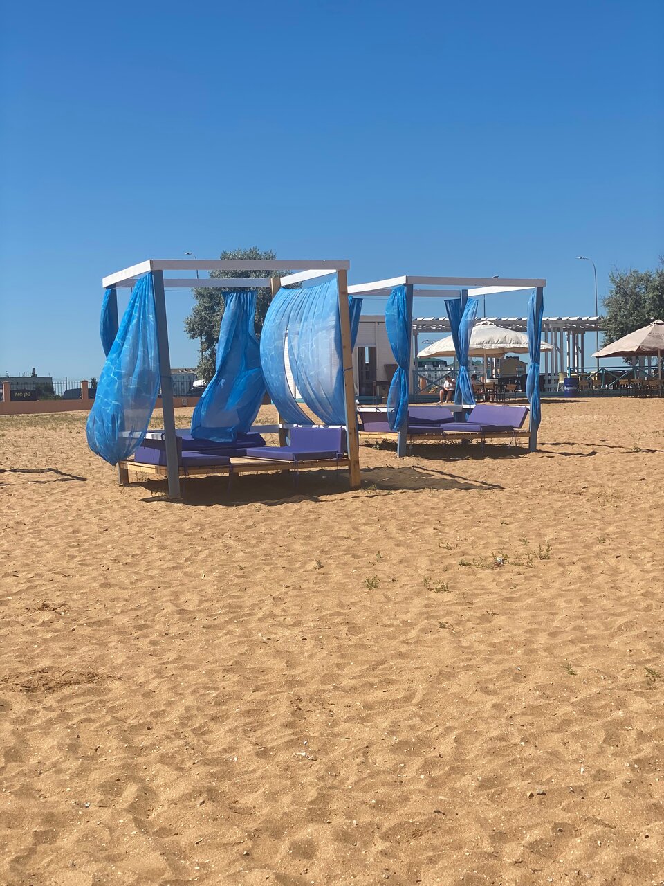 Место хорошее, гостиница новая. Везде чисто, все аккуратно. На территории бассейн, небольшая детская горка и шезлонги. Свое кафе-столовая, еда без каких-либо изысков, но все вполне сносно, минус очень соленая. Расположение гостиницы для пляжного отдыха идеально, пляж в 2-хминутах ходьбы от моря. Из минусов. Кроме пляжа больше ходить некуда, магазины далеко, кафе-ресторанов нет, только столовая гостиницы и такие же столовые в гостиницах рядом. В номере нет чайника и нет воды в общем доступе. Кафе-столовая только до 21 (+- пока хозяйка на месте).