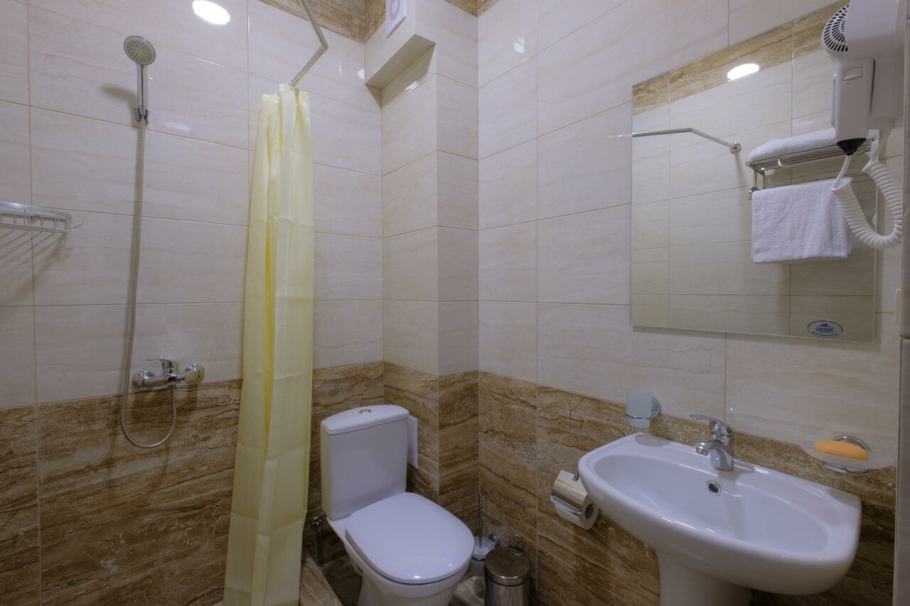 в номере душ,туалет,кондиционер,телевизор LED ,Wi-Fi,холодильник,фен и мебель,выход на балкон с видом на море,набор полотенец,тапочки,набор гигиенических средств,фен