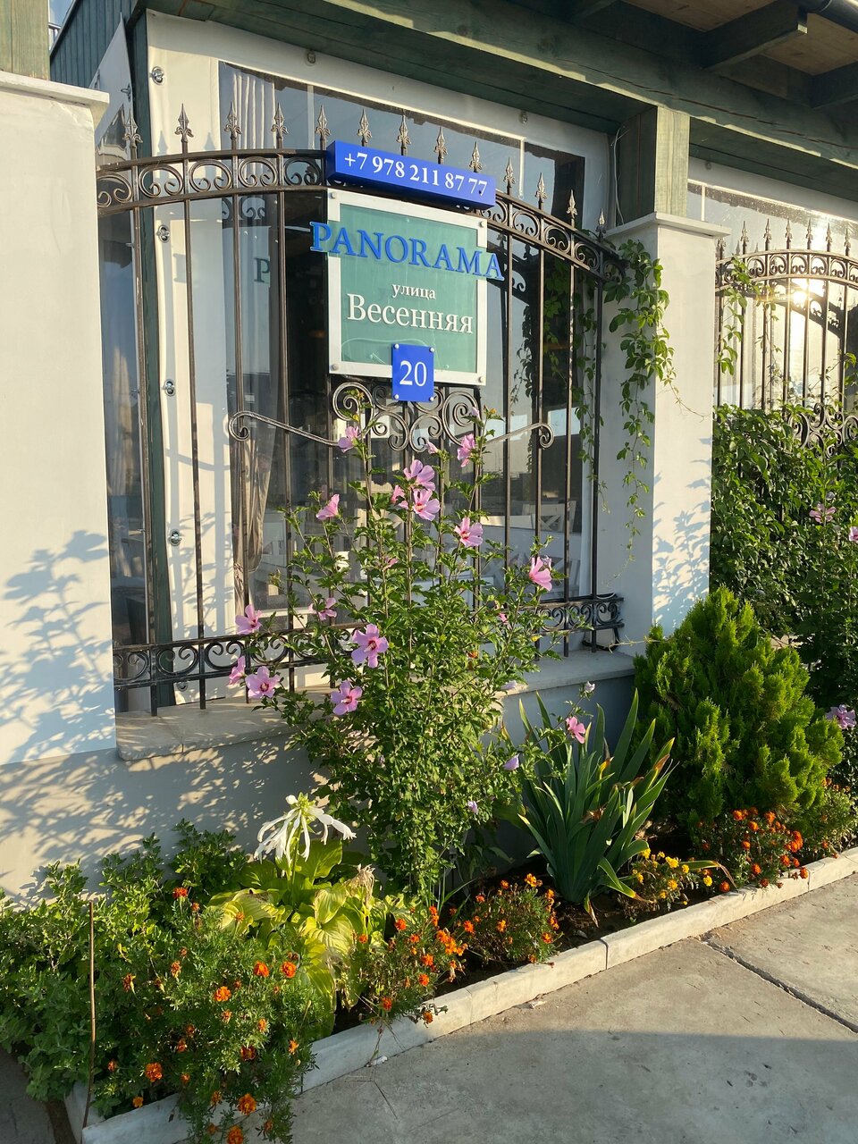Гостиница «Панорама» расположена в Феодосии по адресу: ул. Весенняя, 20. Это современный мини-отель (построен в 2020 году) с эко-концепцией, работающий круглосуточно. Находится рядом с морем и имеет собственный песчаный пляж.
