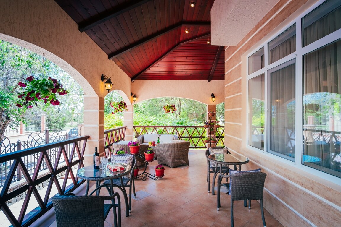 - Гостеприимная и уютная атмосфера.; Толстые стены (хорошая звукоизоляция).; Возможность продления отдыха без проблем.; Красивая терраса для отдыха.; Чистые и просторные номера.