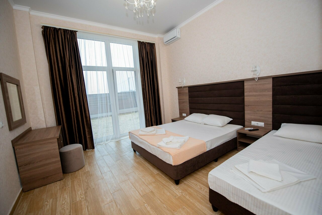 Отдыхали в сентябре. Отель. Всё в отеле чисто, в номер есть все необходимое. Георгий и Николай грамотно руководят отелем, при этом сами делают прибывание в отеле комфортным для каждого гостя. Отель в 10-15 минутах ходьбы от моря и в этом его большой плюс в сравнении с теми отелями, которые находятся рядом с морем, так как тут же находится оживленная дорога, а значит и шум от неё. В 10 минутах ходьбы есть магазинчики, если что-то понадобилось вам) В отеле есть столовая, в которой можно вкусно покушать, что тоже является достоинством отеля.