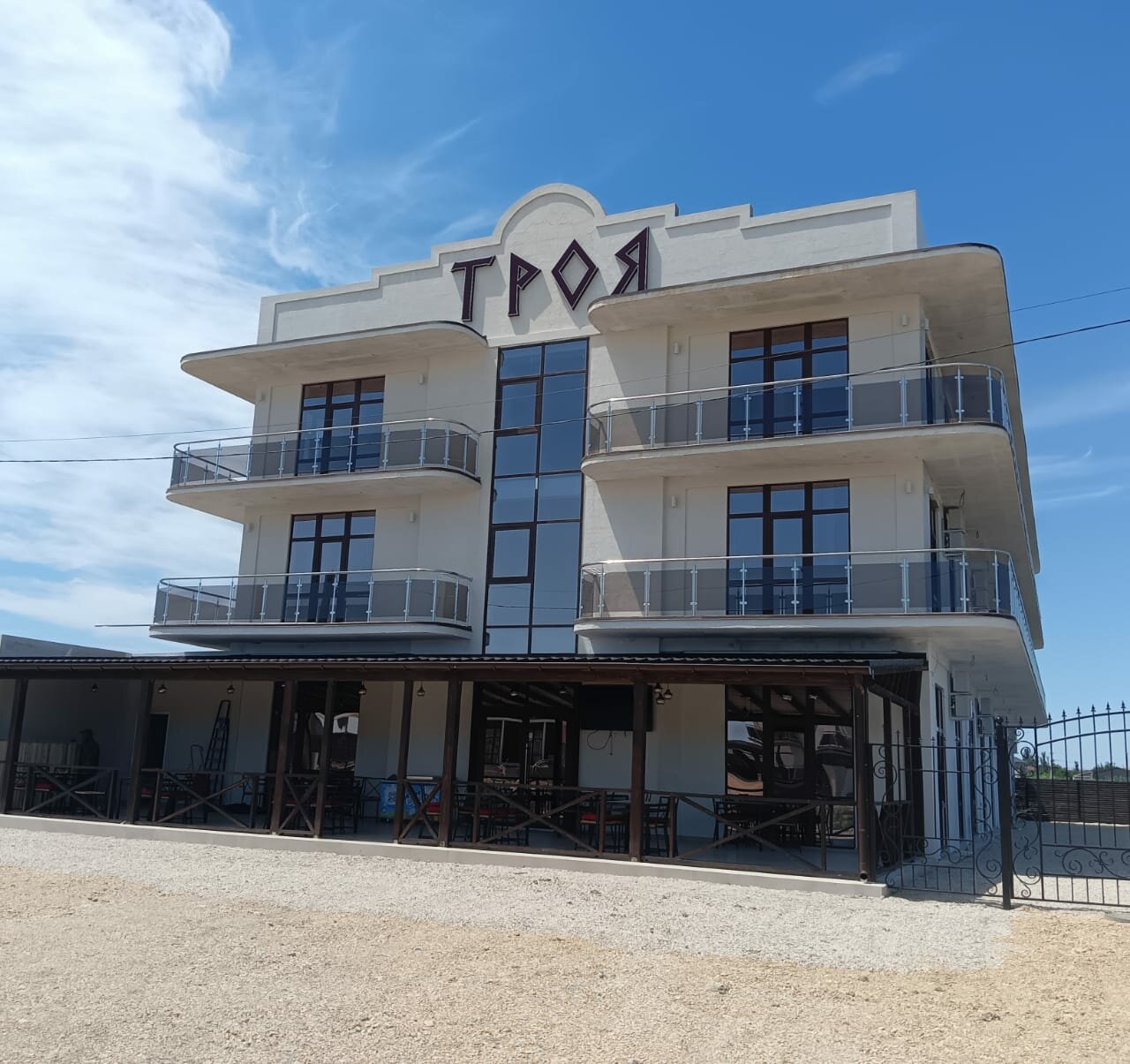 Гостиница «Троя» (Феодосия, ул. Камышовая, 5) — мини-отель категории 3★, открытый в 2022 году. Работает круглосуточно, предлагает номера с кондиционером, телевизором, холодильником и Wi-Fi. Стоимость проживания: от 2000 ₽/ночь или 2500–3500 ₽/час.