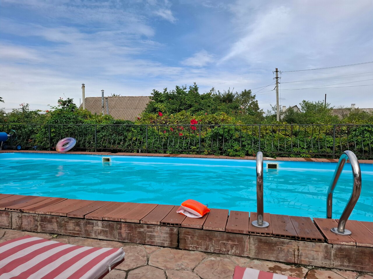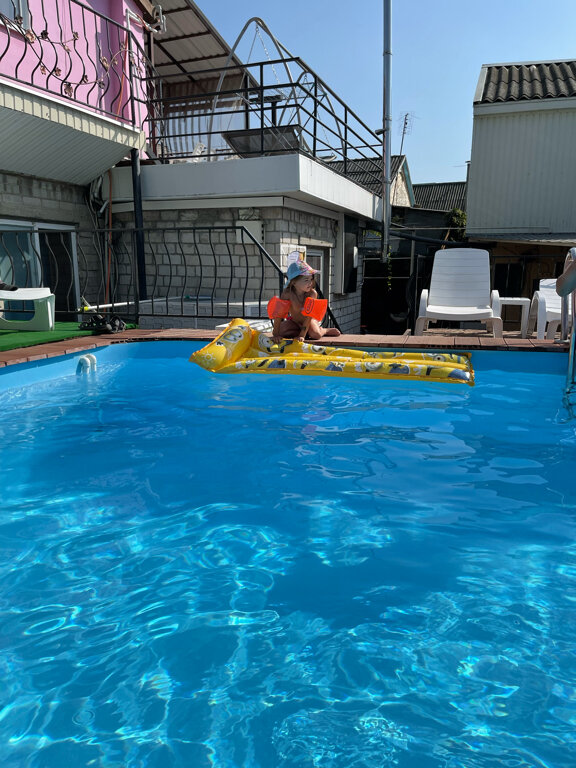 Отдыхали в Феодосии в начале июня этого года. Нашли на вариант на Твиле. Хозяева встретили радушно, по приезду предложили по бокалу вина и детям коктейли. Мелочь, а приятно. Бассейн хороший. Ограничений по времени купания не было. На территории много зелени, домашние фонтанчики, растут плодовые деревья. Из минусов, так это неудобные перьевые подушки. Они очень тонкие. И постоянно в ванной комнате был мокрый пол. Не понятно что подтекало.