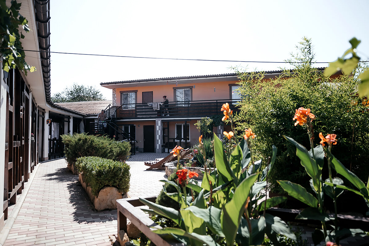 Хороший двор, общая кухня 2 плиты, готовь, что хочешь, мангал. Номера отличные, кондиционер, душ, туалет. Двор внутри частного сектора, нет пыли. Во дворе можно принять солнечные ванны)))