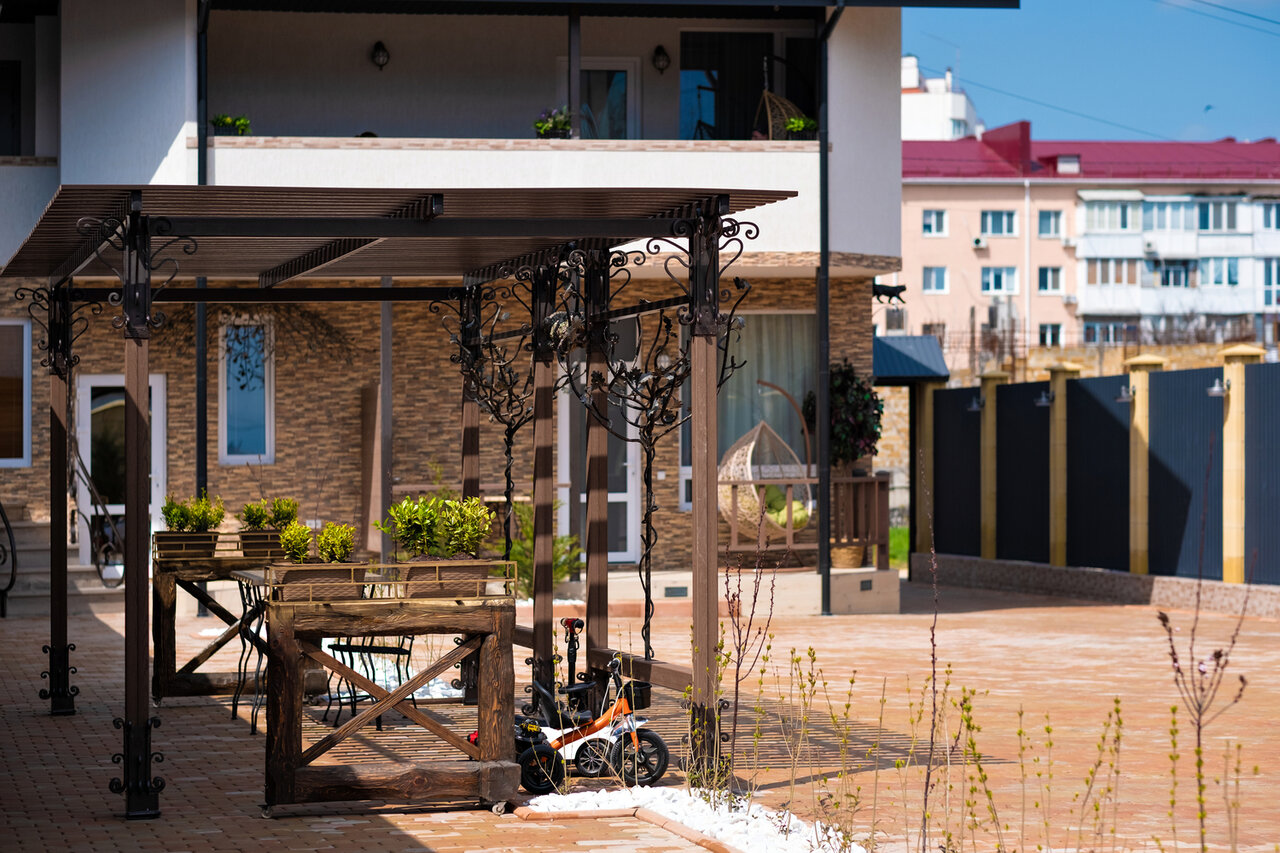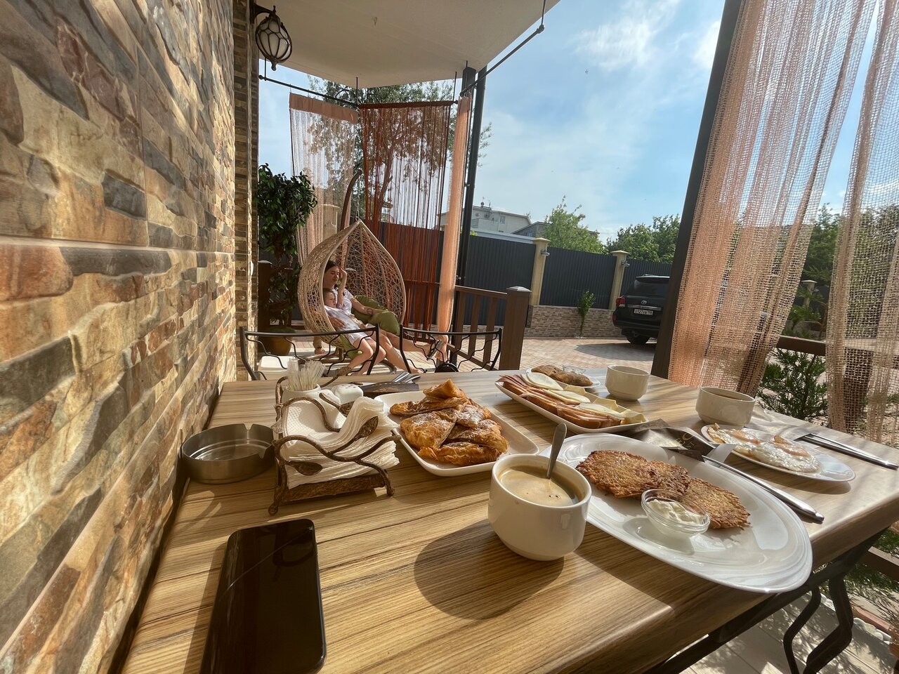Офигенно. Особенно на первом этаже с собственной верандой! Номера как на фото. Все работает. Управляющий Игорь — душка. Все расскажет и покажет, как в гостинице, так и в городе и окрестностях. Завтрак 450 руб (август 2022) — размерами на 2-3 человек! Кофе и чай — бесплатно на кухне. Парковка внутри. Винный магазин рядом, пивной тоже (ищите 3-х литровую банку с хмелем.. ))) ), рынок в шаговой доступности, забыли пляжные принадлежности — все рядом и по цене как у вас дома, а может и дешевле. Единственное, до моря надо прогуляться и в гостинице нет полноценной кухни (варочной поверхности).