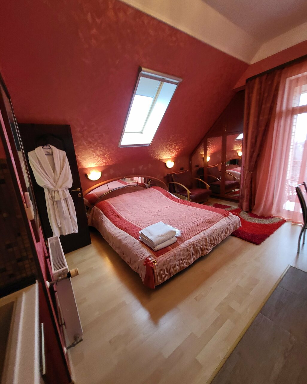 Просторный однокомнатный номер, общей площадью 30 кв.м. оснащен двуспальной кроватью или 2-мя раздельными односпальными кроватями, отдельным санузлом с ванной и туалетом, а также всем необходимым оборудованием. Парковка бесплатно