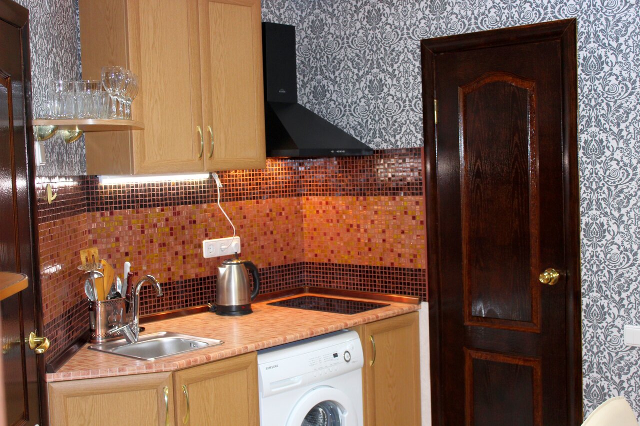 - Полностью оборудованные номера (плита, чайник, стиральная машина, утюг, посуда, кофеварка, мультиварка).