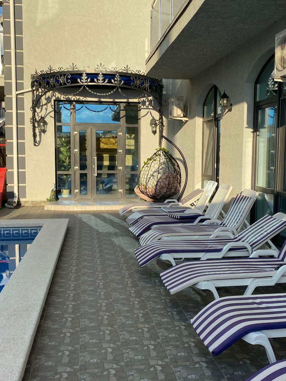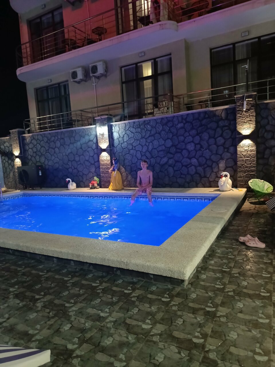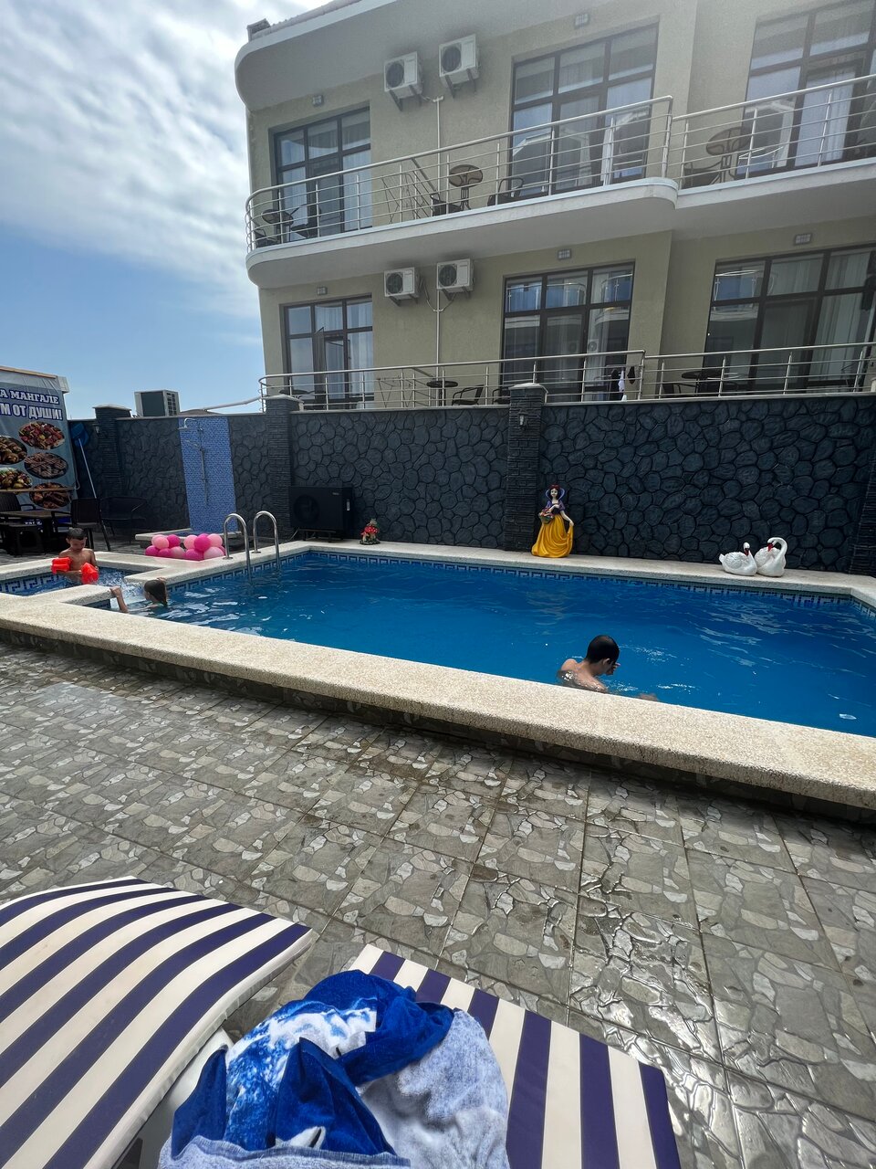 Отдыхали с 23 августа по 29 августа. Отличный отель. Номера светлые и чистые, все новенькое. В номере кондиционер, фен, балкон, холодильник, сейф. Все что нужно ! Можно отдать вещи в стирку, погладить если нужно. Персонал очень дружелюбный. Очень приветливые хозяева. Есть бассейн, столовая ( очень вкусно кормят ), вечером жарят шашлык (курица, свинина, люля, овощи и любое что хотите под заказ). До моря 2 минуты. Рядом пляж со всей инфраструктурой. Отличный заход, песочек, лежаки, кафешки. Всем советуем!!!