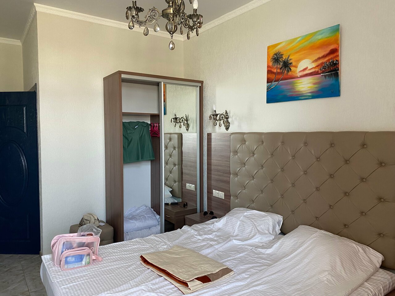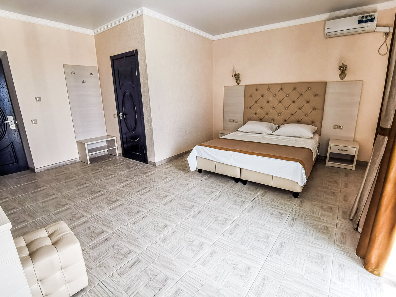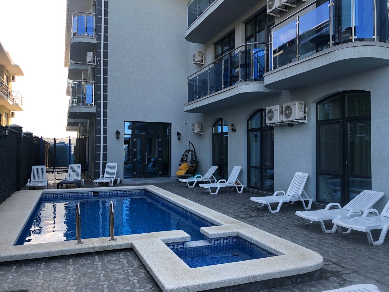Отдыхали с 23 августа по 29 августа. Отличный отель. Номера светлые и чистые, все новенькое. В номере кондиционер, фен, балкон, холодильник, сейф. Все что нужно ! Можно отдать вещи в стирку, погладить если нужно. Персонал очень дружелюбный. Очень приветливые хозяева. Есть бассейн, столовая ( очень вкусно кормят ), вечером жарят шашлык (курица, свинина, люля, овощи и любое что хотите под заказ). До моря 2 минуты. Рядом пляж со всей инфраструктурой. Отличный заход, песочек, лежаки, кафешки. Всем советуем!!!