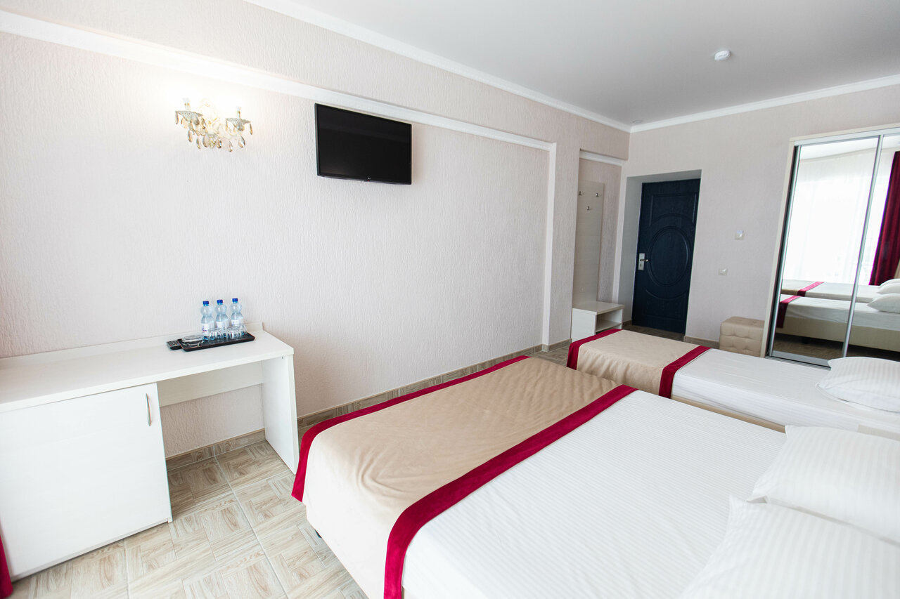 Отличная гостиница,новые уютные номера. На территории гостиницы есть своя столовая и бассейн. Персонал гостиницы очень старается угодить гостю. Единственный минус до моря нужно идти через дорогу,где очень долгий светофор.