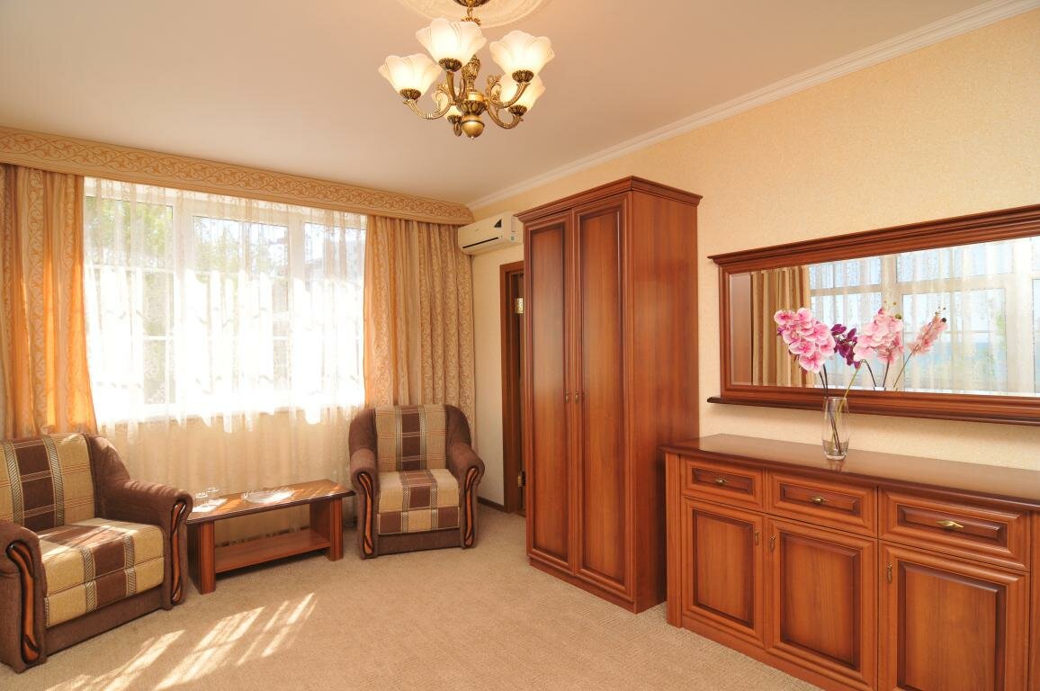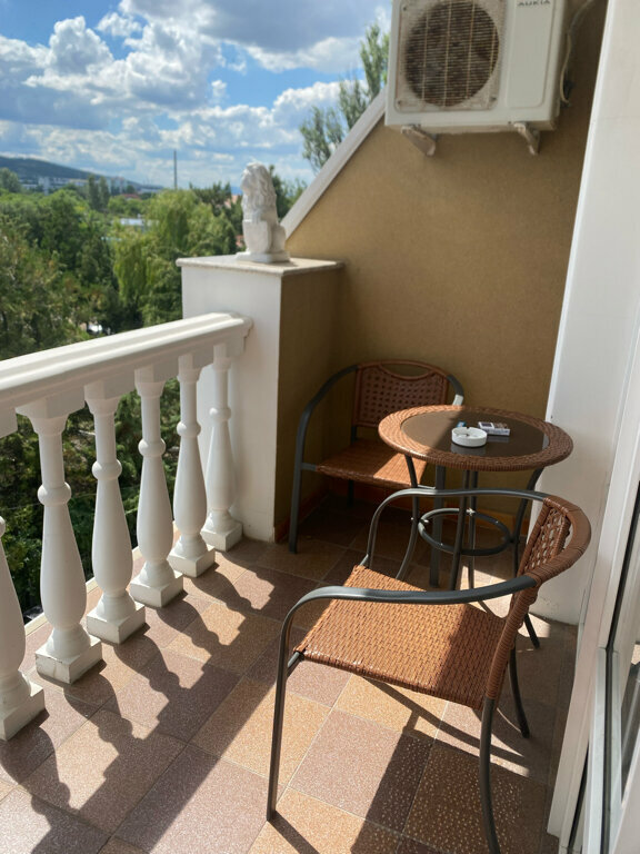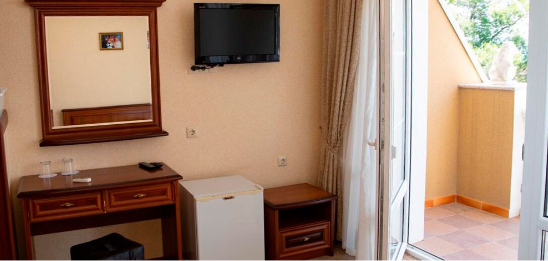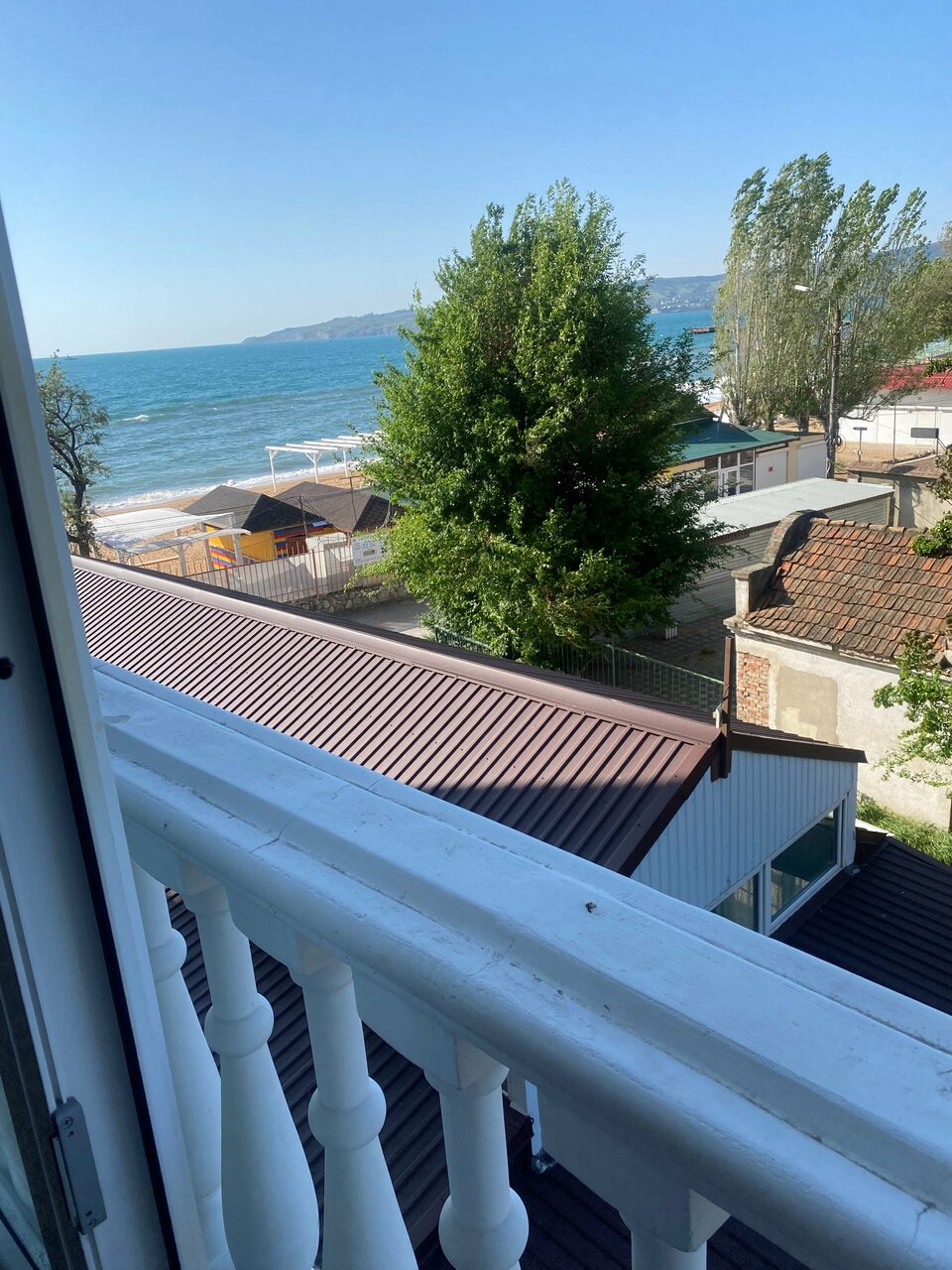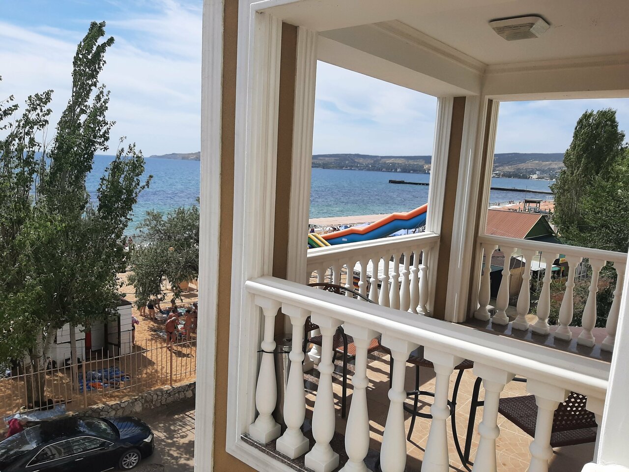 Снимали номер 1 взр 2 ребёнка 4700р, номер не плохой, сказали боковой вид на море, балкон есть. Факт плачевно ударил своей противоположностью. Балкон 10см , вид на большой кондиционер. Удобное расположение 1 линия, завтрак включён. Женщина на раздаче просто чудо , каменное лицо и ненависть не скрываемая ко всем отдыхающим. Но это не напрягало, первый раз ступор а потом ха ха ловишь.