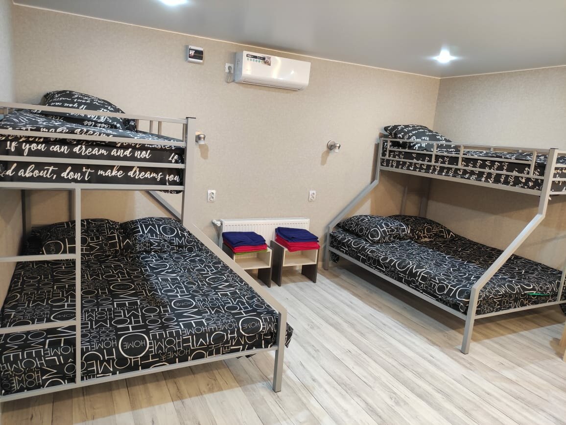Неплохое место. Понравилось. Трёхместный номер: внизу двухспальная кровать, наверху полуторка. В номере чисто. Есть отдельное помещение , где можно разогреть еду, покушать, воспользоваться холодильником В шаговой доступности продуктовый магазин. Есть кондиционер , телевизор и даже фумикатор.. Парковка своя. Персонал очень приветливый.
