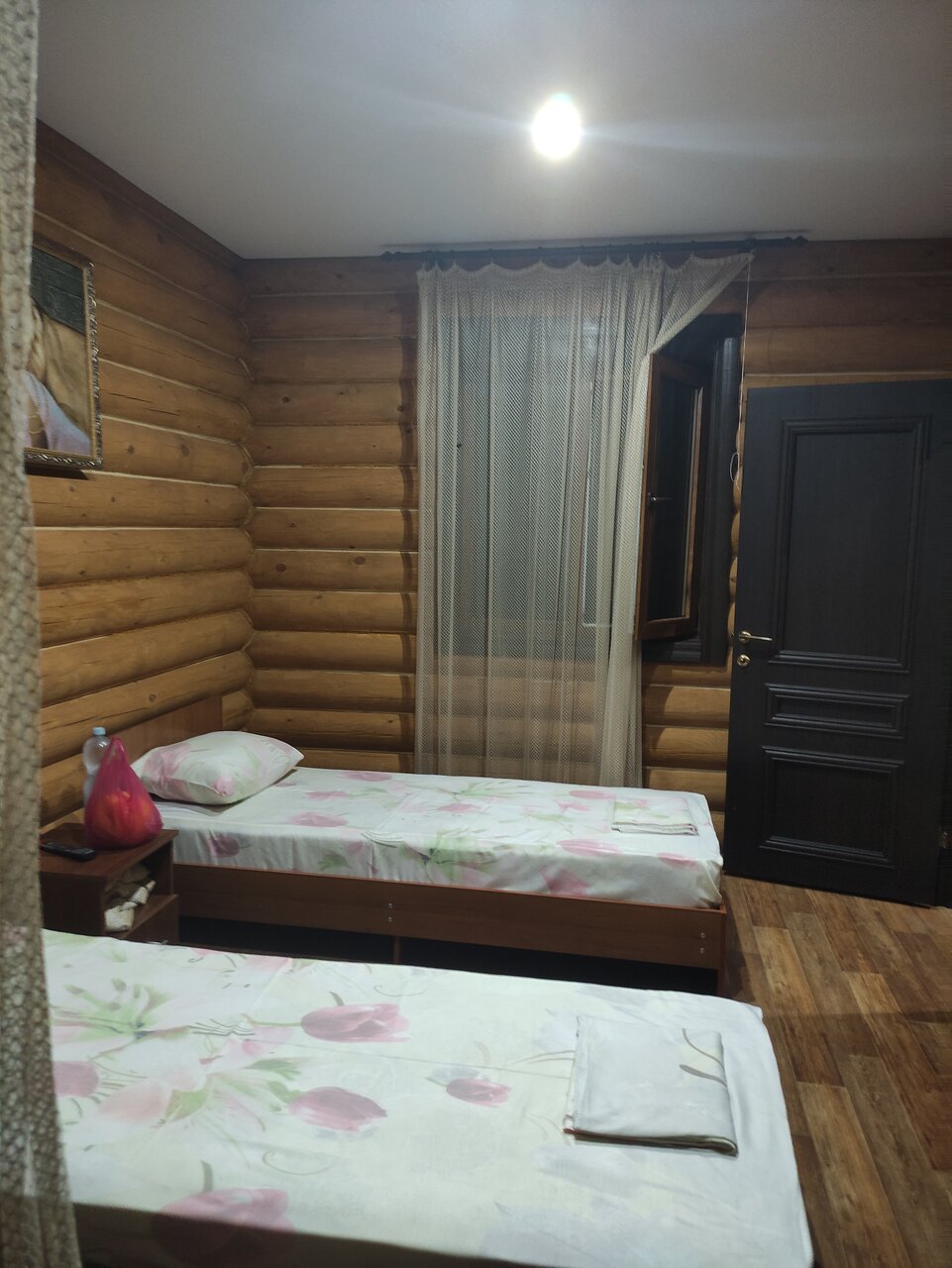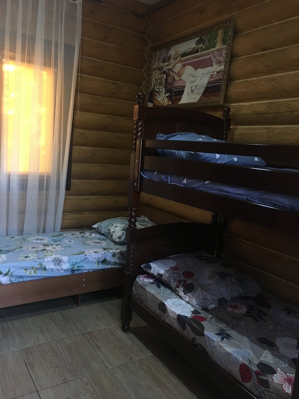 Бревенчатый дом, удобные койки! Всё хорошо, только не хватило кондиционера в номере, душновато было. Но переновать одну ночь нормально.