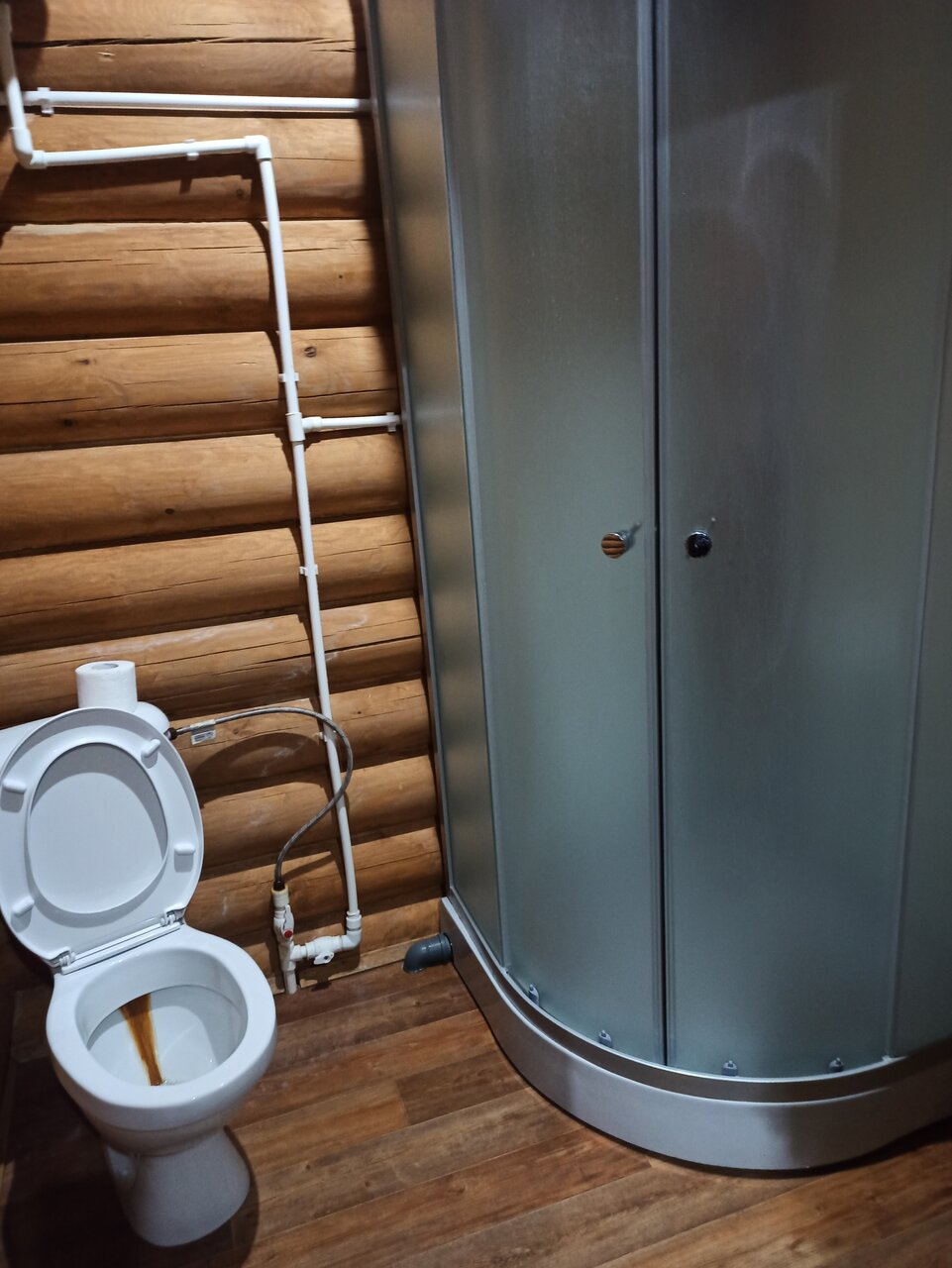 Добрый день. Заехали сюда, так как дорогие были заняты. 1. Белье синтетика, не выспаться, 2. Душ — это отдельная история, и сам весит туалет и внизу слив, который плохо работает, 3. Туалет плохо работает. 4. Берет только наличку или перевод, 5. Всё слышно что происходит снаружи.