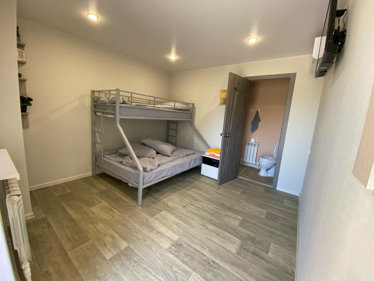 Чисто и аккуратно, удивило наличие полотенец по количеству мест. Парковка частная, въезд через ворота. Машина ночует под камерой. Приехали ночью, нас встретили без проблем, все рассказали показали. Съезжать с трассы было немного страшно, нужно было 200 метров поехать по неосвещенной дороге, сами ворота с фонарем. Из минусов нельзя животных и кто-то выезжал сверху в районе 3-4 утра, было очень сильно слышно, но когда уже уснул с дороги, то уже не мешает. Есть кондиционер.