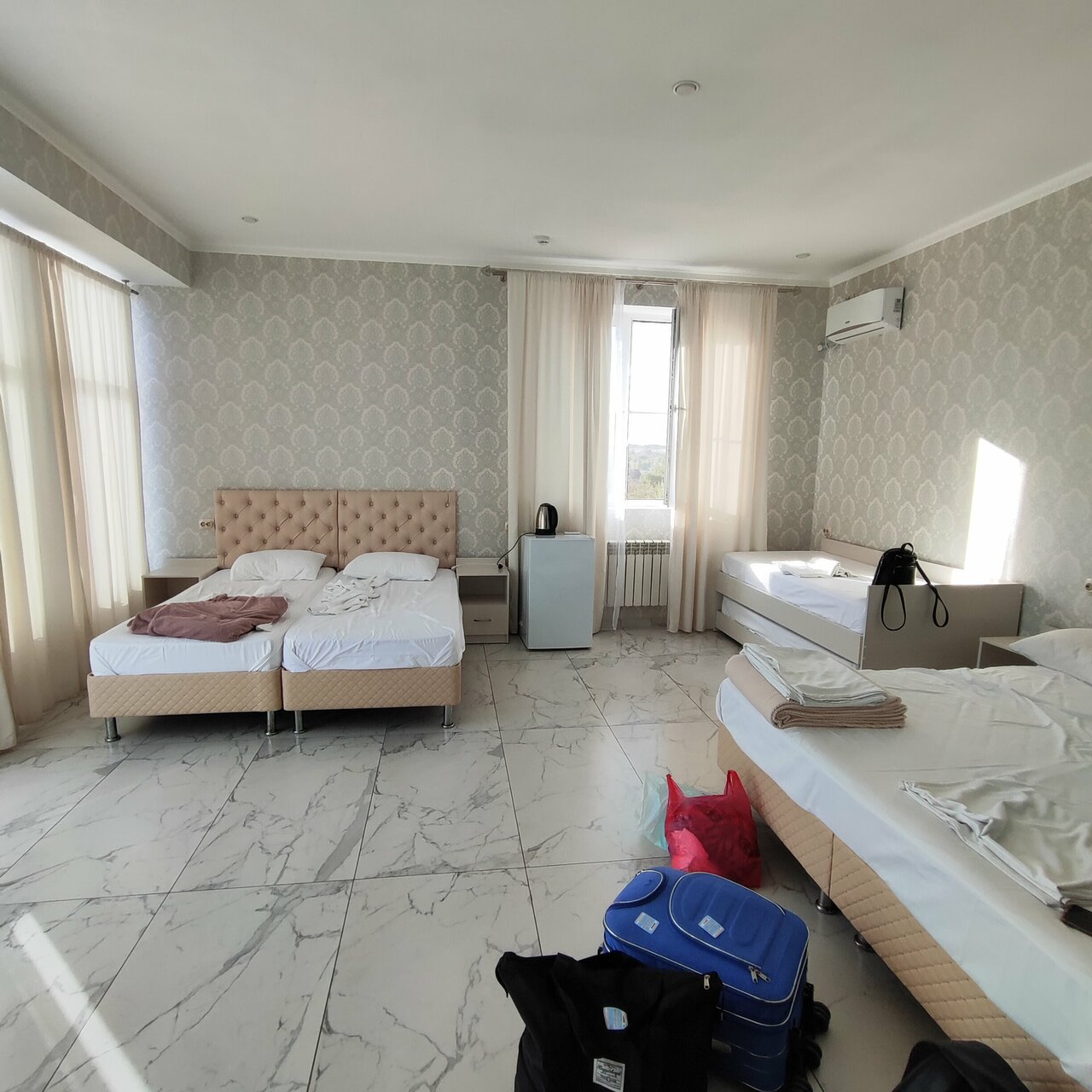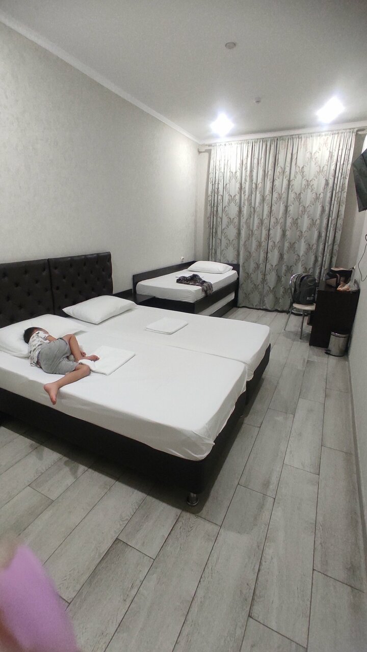 Добрый день! Останавливались в отеле Олимп 27 июня 2024 года. В составе 2 взрослых и 3 детей. Были в 1 номере , очень просторный, большой. Номер на 6 полноценных мест. Всё новое, чистенькое!!! 28 июня выехали утром. И в дороге понимаю , что забыла кольцо на холодильнике. Связались с отелем, всё сразу нашлось и в течении часа , хозяин отеля отправил доставкой сдэк к Москву. Рекомендую этот отель отзывчивый и вежливый персонал. Спасибо большое! Вернемся ещё с удовольствием!!!!