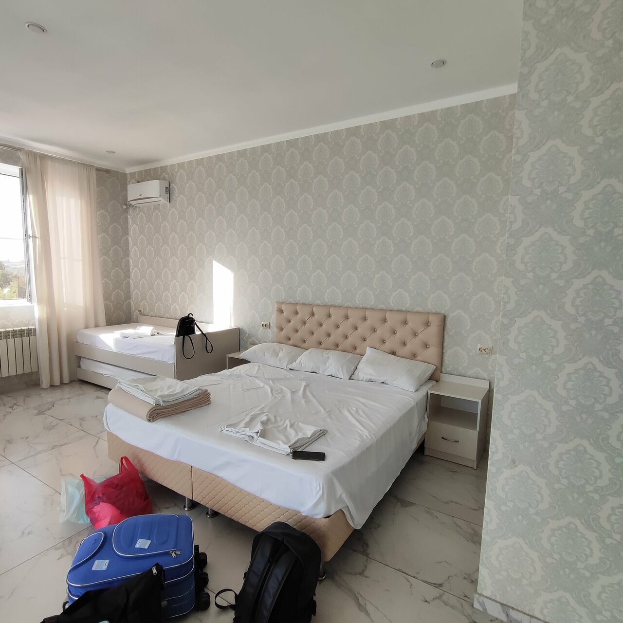 Очень хороший 4-х местный номер #14, если бы не два но: кровать с выдвижной секцией находится прямо по кондеем, соотвественно если там дети, спим без кондея + за окном грохочет какая-то то ли вытяжка, то ли кондей, очень шумно.