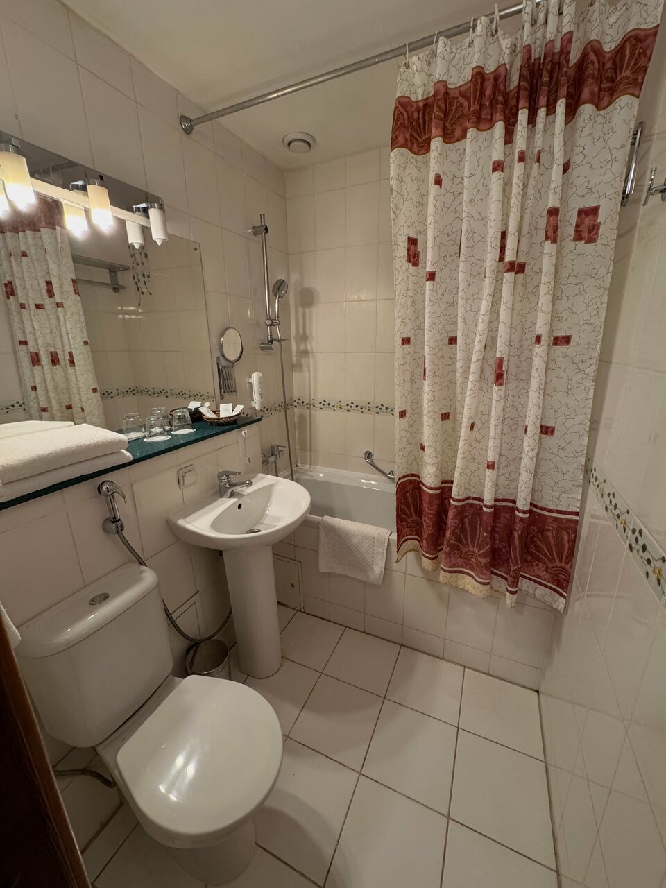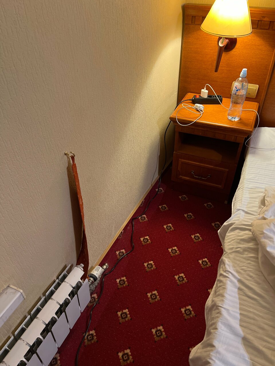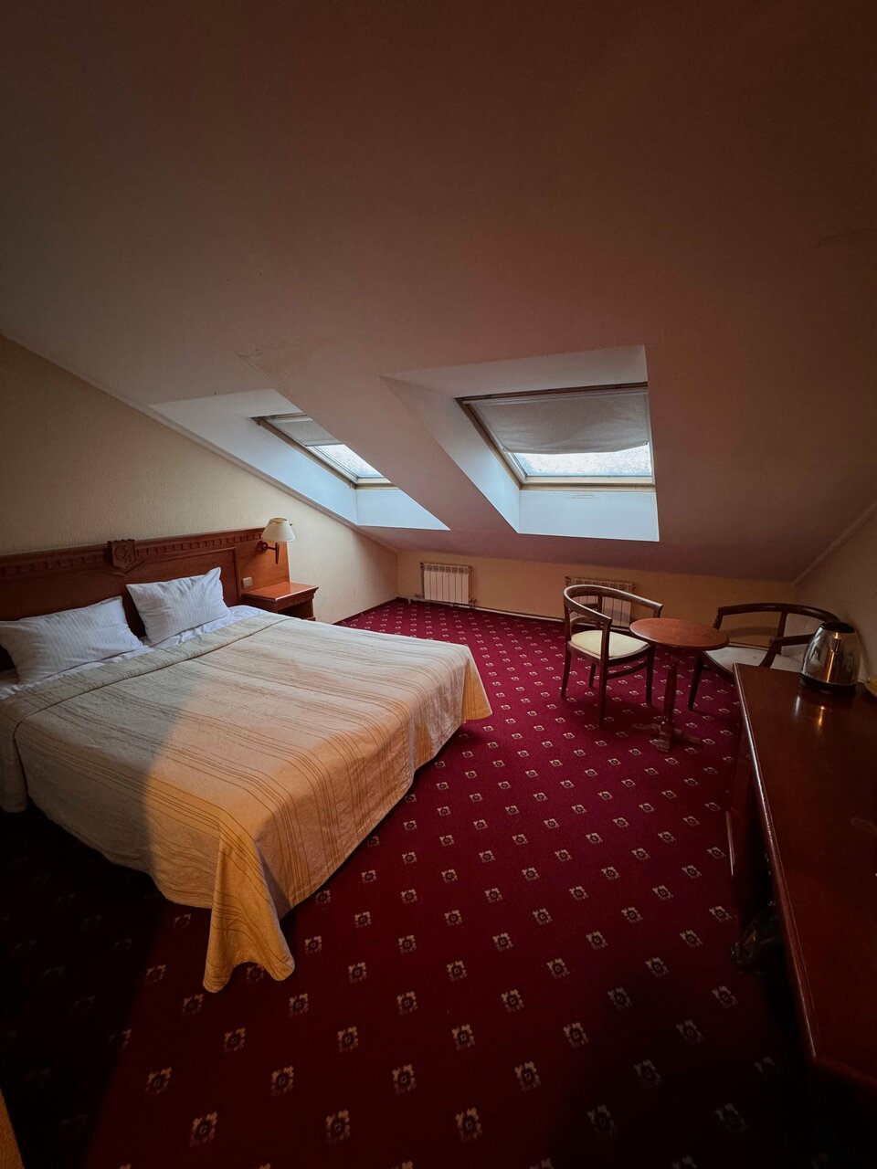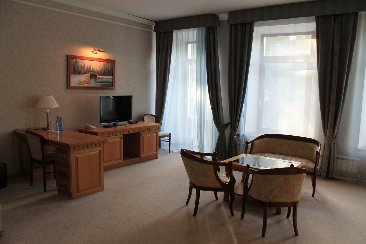 Не работает телевизор ( минуту поработает, потом пишет, что плохой сигнал). Гостиница старая, номера уже не такие, как на фото… Пятна на полу, на стенах, всё уже пошарпанное, пыль, единственный плюс — это очень хорошее местоположение отеля и наличие парковки