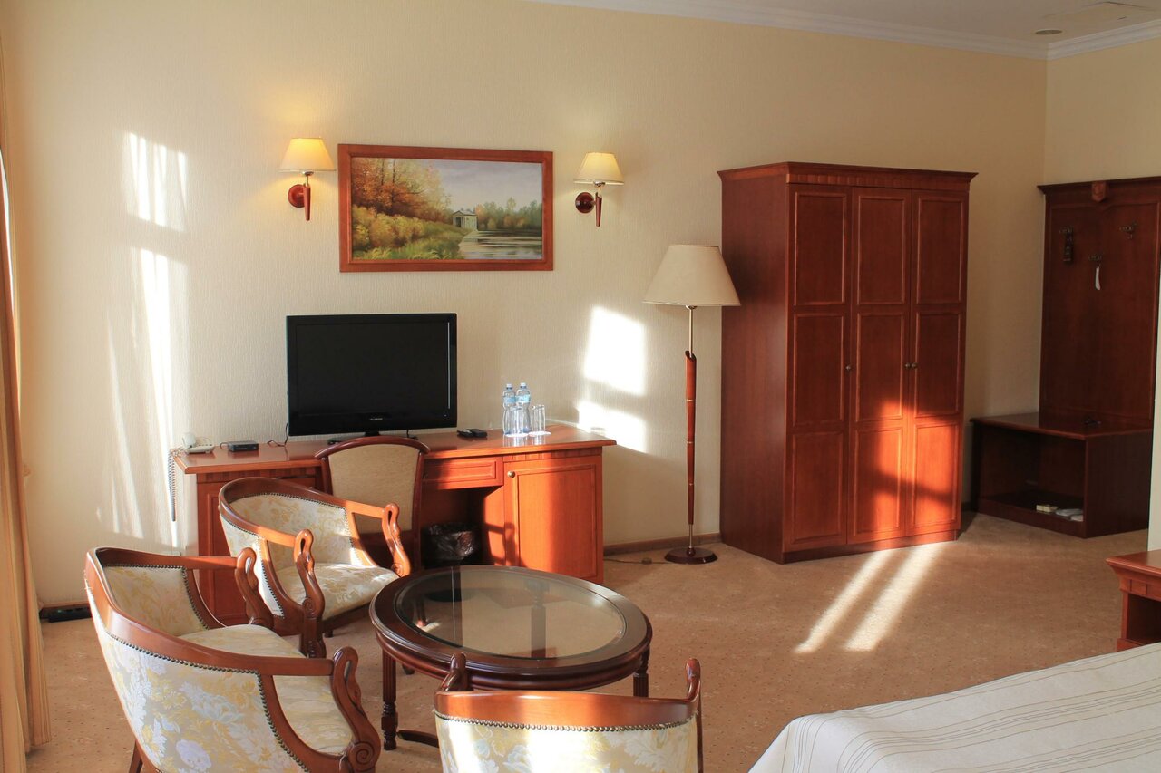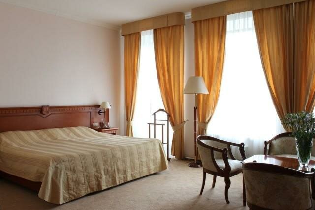 Отель позиционирует себя как 4 звезды. На это и купились, когда бронировпли номер. Если рассматривать в целом (услуги, парковка, завтрак, расположение) то с натяжкой можно дать. А вот в совокупности при проживании всплывают минусы. Холодильника в номере не было (но шкафчик для него был). Сам отель требует ремонта (причем уже давно). У нас в номере (мансандра) одно окно было сломано и не открывалось. Кондиционер охлаждает плохо, но при этом тарахтит как советские холодильники, а без него очень некомфортно по ночам (так как погода была жаркая). Вместо телевизора, который возможно был неисправен, нам поставили маленький монитор. А вот воду и полотенца меняли каждый день. А в целом Гатчина нам понравилась.