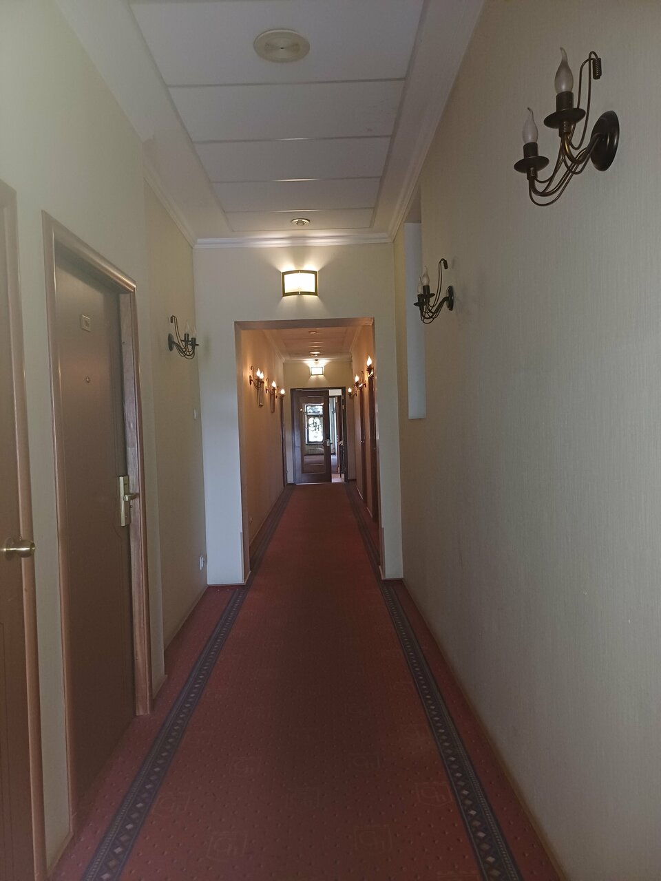 Старенькая гостиница, ковровые покрытия стерты. Местами не работают механизмы ( замки и т.п. ) но жить можно.