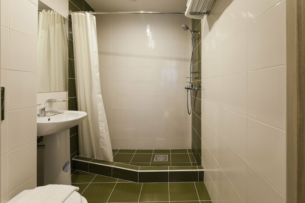 Душный подвальных этаж, открываешь окно — очень шумно от уличного движения. В 9 номере опасная стеклянная полочка у зеркала над раковиной, протекающий шланг душа, и старый герметичный у душ кабины-лужа на полу. Шумно работает насос принудительной канализации. Размер номера хороший, кроватки удобные, рядом по коридору отличная кухня.