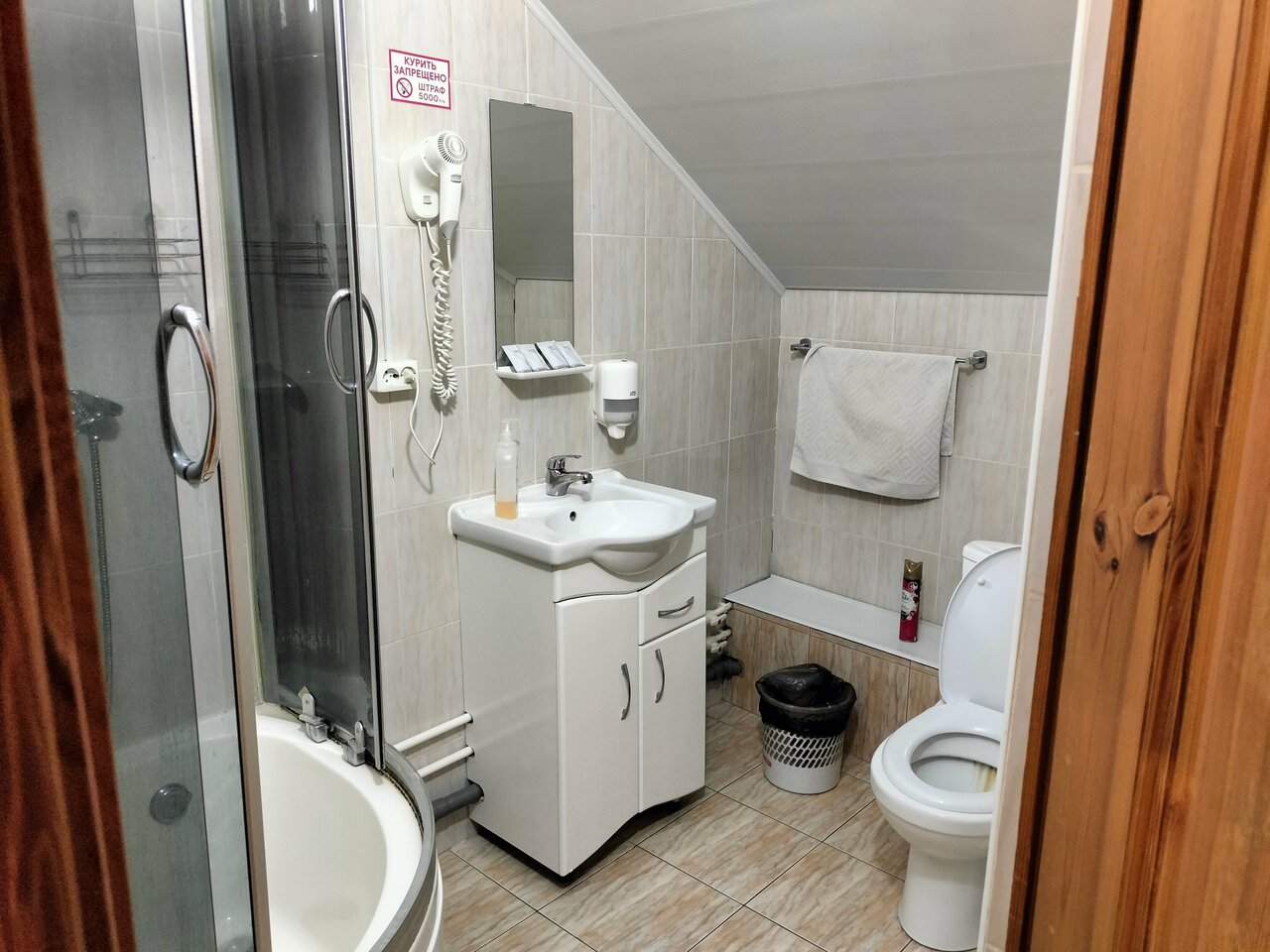 Переночевать одну ночь, сойдёт, но для длительного проживания нам не подходит. Полы ужасно скрипят и в коридоре, и в номере, доставляя дискомфорт. Ванна отсутствует, но есть душ, при пользовании которым весь пол мокрый и ванные шторки не спасают. Отсутствует полотенцесушитель и негде просушивать влажные полотенца. А еще для нас минусом был какой-то очень неприятный запах в номере и спасибо что погода позволяла, мы все три ночи жили с открытым окном. За все время нашего пребывания, уборки номера не было ни разу. Для себя мы пришли к выводу, что в случае приезда в Гатчину еще раз, мы будем бронировать номер в другой гостинице.