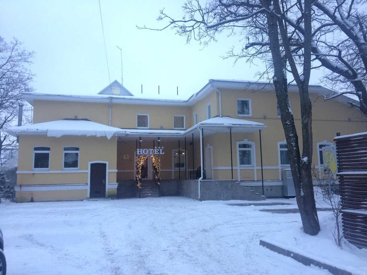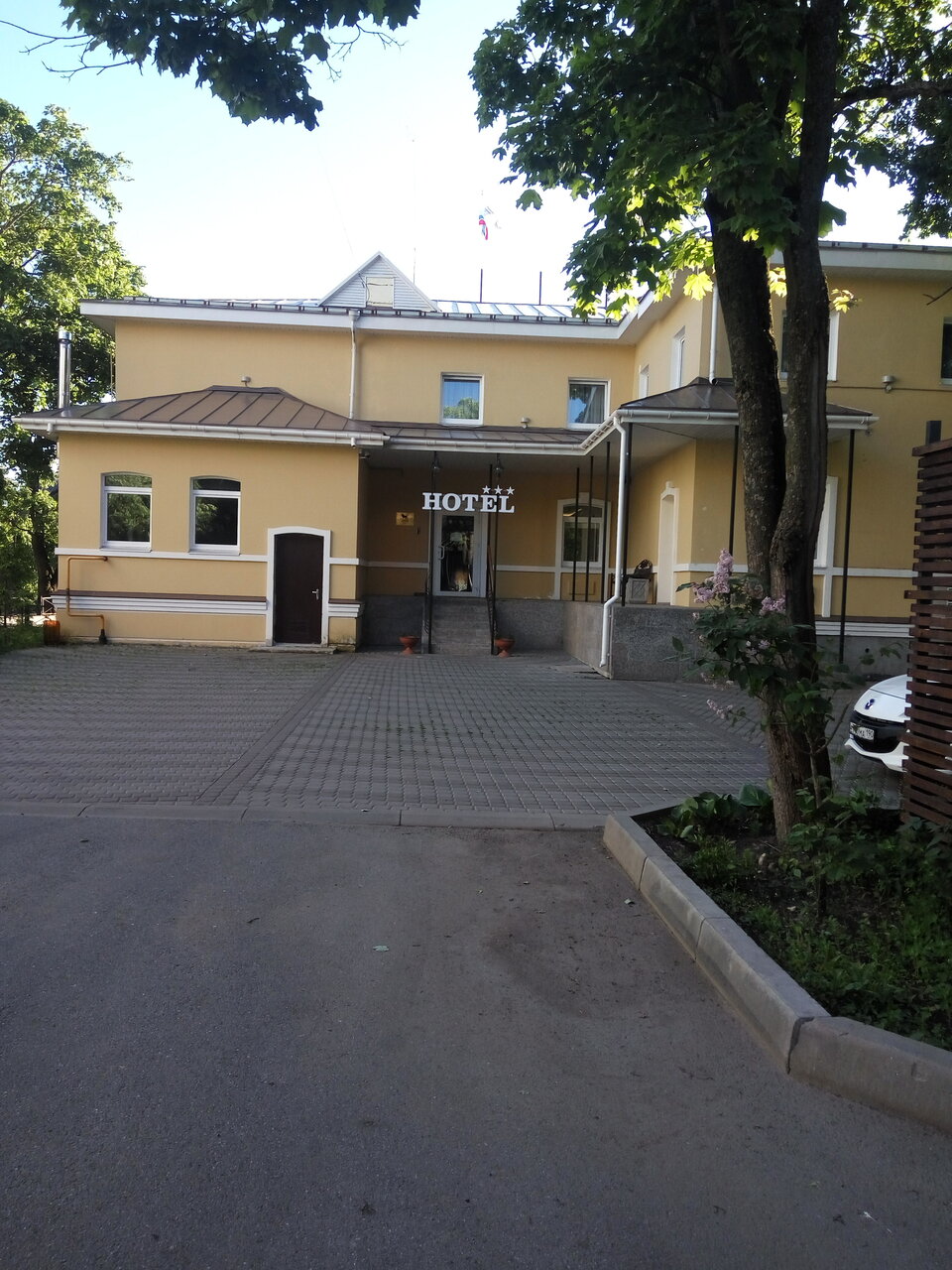 Ночевал по дороге в Нарву. Одноместный номер эконом лучше не брать — в нем шумновато. В остальном всё супер: удобная кровать,душевая, завтрак — пальчики оближешь. Утром прогулялся по парку и в дорогу — 2 часа неспешной езды и на границе. Как раз ко времени заезда в следующую гостиницу.