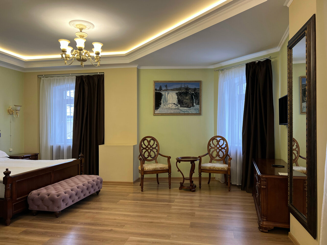Как-то от люкса ожидал большего. Большая бестолковая комната, текущий душ и странный запах. Завтрак из коробок был тоже так себе. Персонал вежливый, но в номере нет даже утюга, приходилось идти на ресепшн. Протиторечивые впечатления.