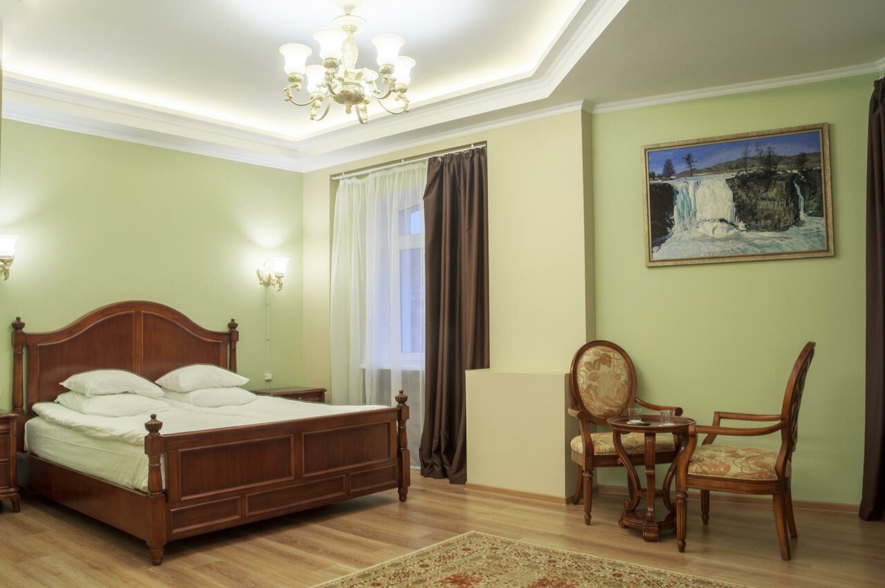 Услуги и удобства: — Номера от 2000 до 8000 ₽/ночь с кондиционером, санузлом, Wi-Fi, телевизором, мини-баром и звукоизоляцией. — Питание: завтрак (включая английский), кафе, ресторан, чай/кофе в номерах. — Дополнительно: бесплатная парковка, трансфер (аэропорт, вокзал), прачечная, бизнес-услуги, конференц-зал. — Для гостей: прокат велосипедов и авто, массаж, игровая комната, терраса, обмен валюты. — Размещение с животными разрешено.