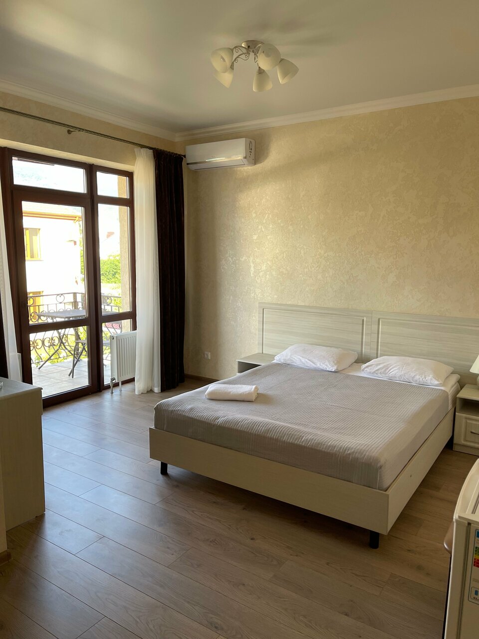Отель хороший, чистый номер. Очень далеко от моря. Кто на машине тому удобно будет добираться до моря. Кто без машины, не советую. По поводу полотенец, или отбелите, или поменяйте на новые, так, как они все серого цвета. Вытираться ими неприятноПо поводу подушек-это какой-то ужас, на них совсем неудобно спать, они маленькие и как блиныОбращаюсь к хозяевам отеля, замените подушки и полотенца они вам портят репутацию отеля. Простыня нам попалась с дыркой, вроде мелочь, но неприятно..В остальном все нормально.