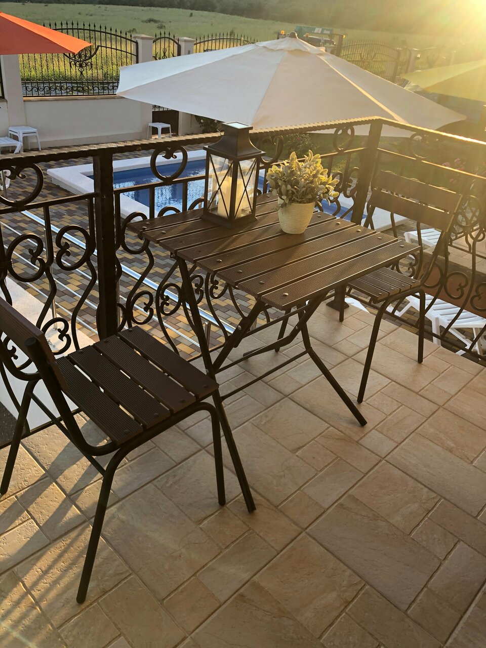 - Наличие бассейна с лежаками и зонтиками.