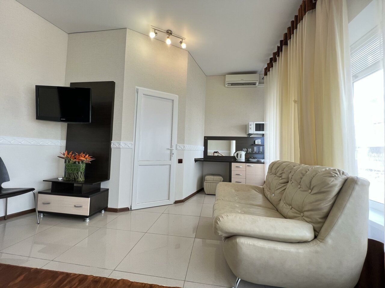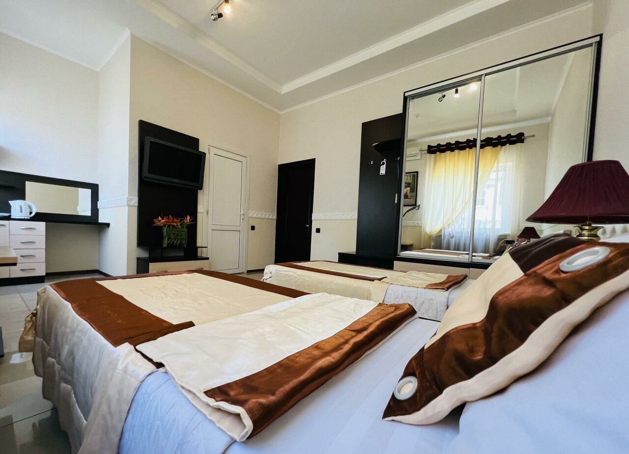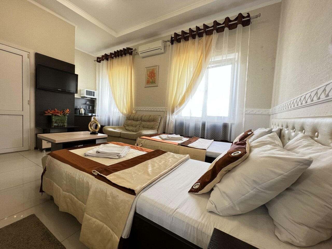 Классная гостиница, чистота и уют, всё необходимое есть, универсам Пятёрочка на 1 этаже, до аэропорта 10 минут пешком, до моря 30 минут пешком,, короче всем советую, сутки 1500 т. р