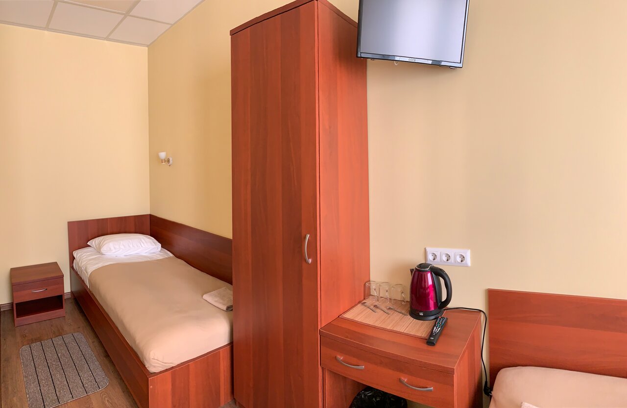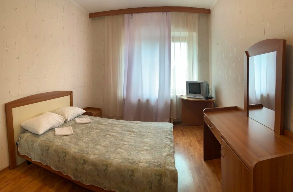 Бюджетно. Свежий ремонт. Типичный номер, маленький. Не было холодильника. Столовая -не помню, кажется была на ремонте. Место расположения и внешний вид здания- грустно. До парка ‘Патриот’ на машине удобно.
