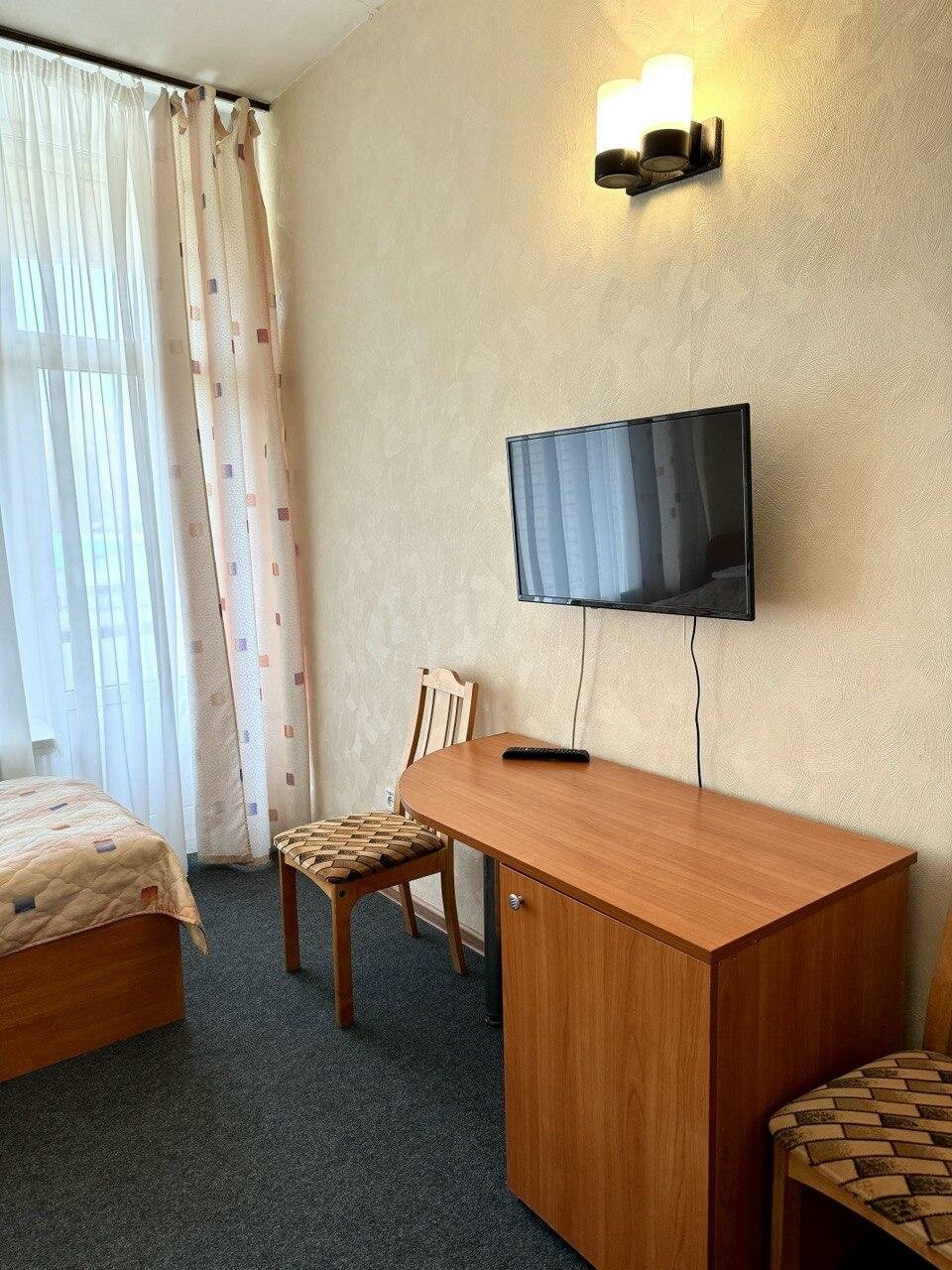 Холодно! Очень расстроила гостиница. В номере 18 градусов, полы ледяные. Завтрак отличался разнообразием только в том, что сокращалось количество блюд. Сначала кончились сосиски, потом сметана, потом каша…зато на ужин два салата. И холодный чай в холодном ресторане. Кулер, чтоб попить чая в номере, я так и не нашел. Номер чистый, постельное хорошее, вода горячая есть. В целом гостиница весьма ушатана, живёт за счёт не привередливый военных и спортсменов. Ни за что не хочу повторить проживание в ней.