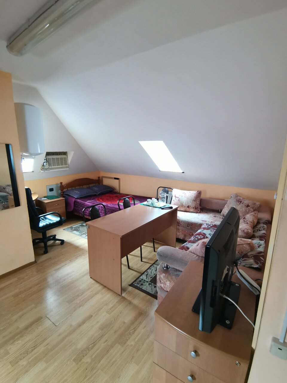 Одноместный номер стандарт с двухспальной кроватью собственным санузлом и душевой.В номере: двухспальная кровать,стол, стул, телевизор, косметика для душа, полотенца, тапочки, WI-FI, холодильник, кондиционер.