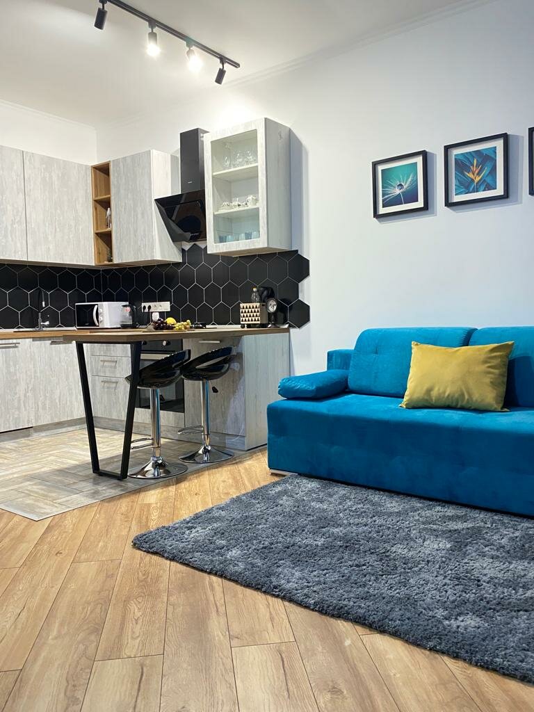 Современный, уютный номер категории 'Комфорт' площадью 34 кв.м., подходит для проживания от 1-го до 4-х гостей. В номере расположена особо широкая кровать размера 'King size' с ортопедическим матрасом и независимым пружинным блоком и диван-кровать