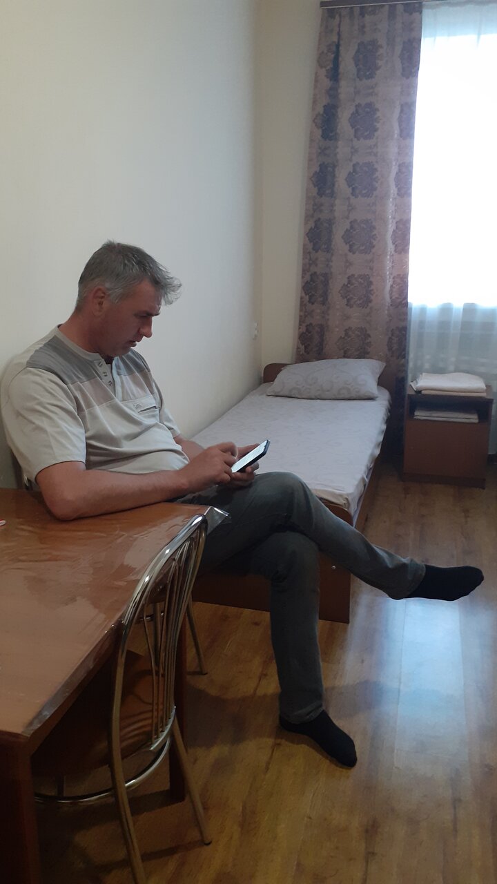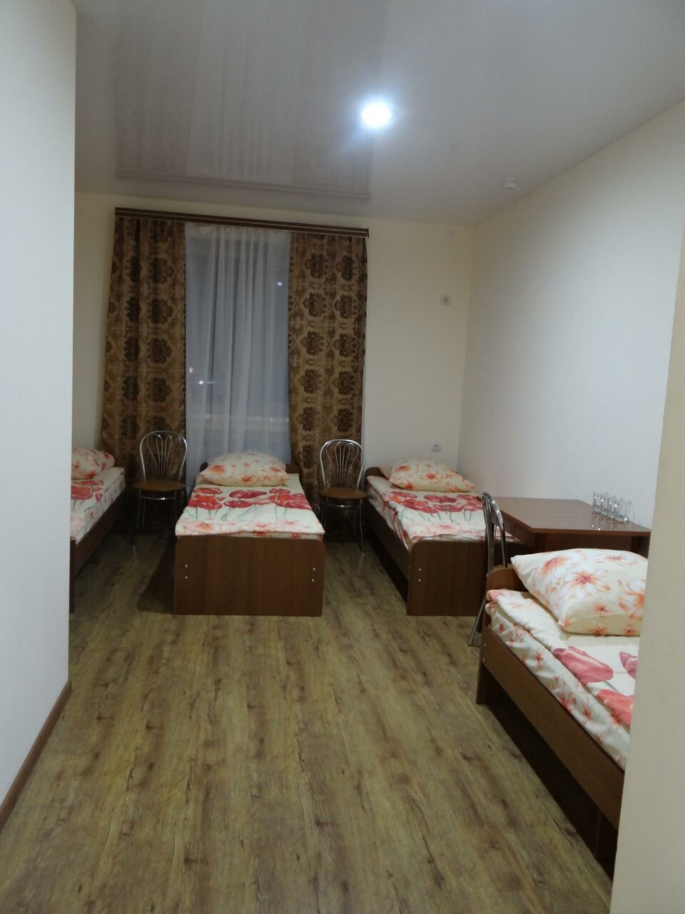 Очень повезло с гостиницей. Искали место, где переночевать в пути. Рядом с дорогой, что удобно для путешествий. Чистенький простенький номер (поспал и поехал). Есть холодильник и телевизор (все работает). Санузел в номере. Горячую воду пришлось сливать, но не критично. Рядом есть кафе-столовая, работает с 7:30 до 22:00. Вкусный ужин. В качестве завтрака дали пакет с соками и печеньем. Приветливый персонал
