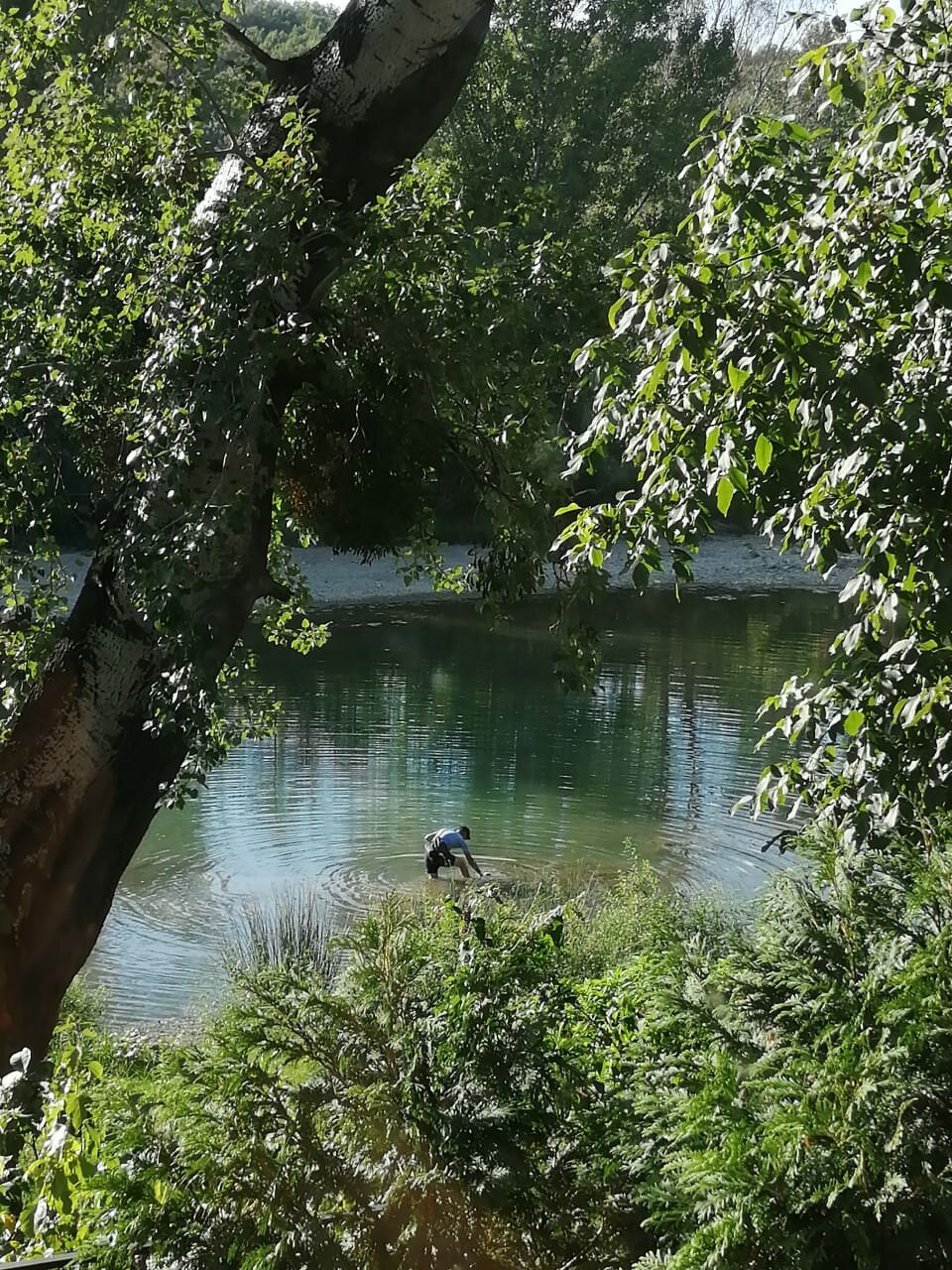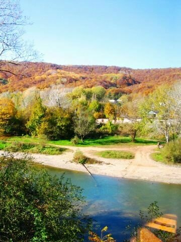 - Выход к реке, вид на реку и горы.